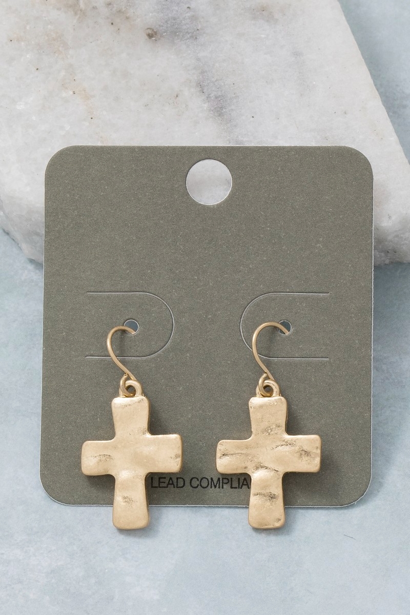 - This pair of dangle earrings showcases a timeless vintage metallic cross style. Immerse yourself in fashion finesse with this statement pair of dangle earrings.