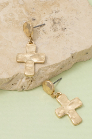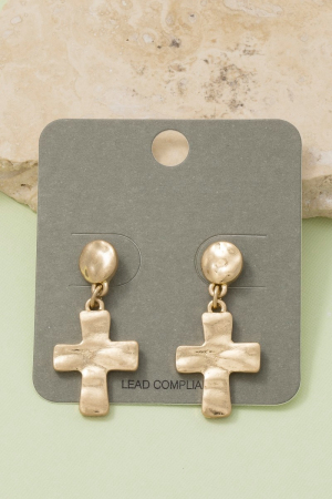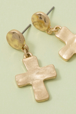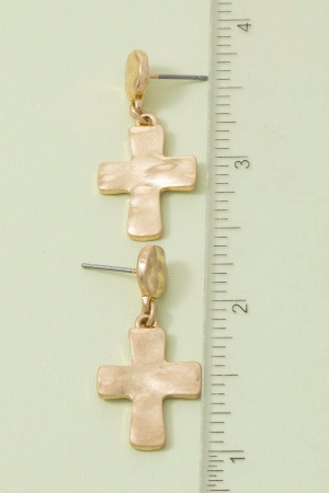 - This pair of dangle earrings features a fashionable vintage metallic cross stud style. Indulge in the artistry of accessorizing with this unique piece.