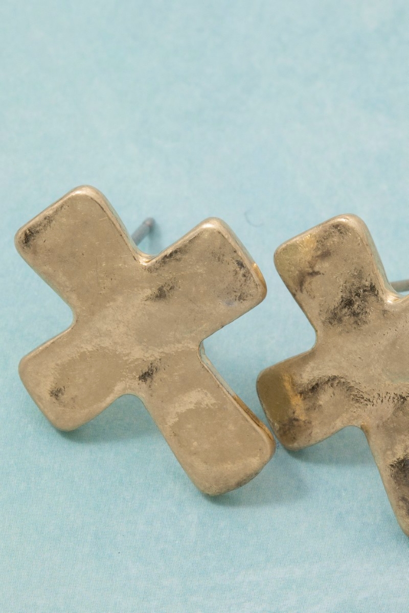 - This pair of stud earrings displays a vibrant vintage metallic cross style. Savor the allure of detailed craftsmanship in this exquisite pair of stud earrings.