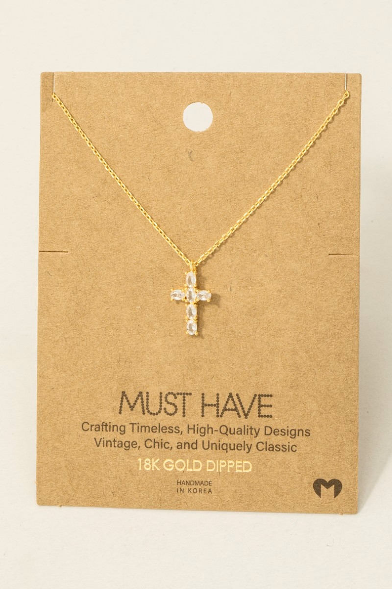 Gold Dipped And Cz Cross Charms Necklace