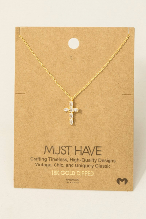 Gold Dipped Cz Pave Cross Pendant Necklace