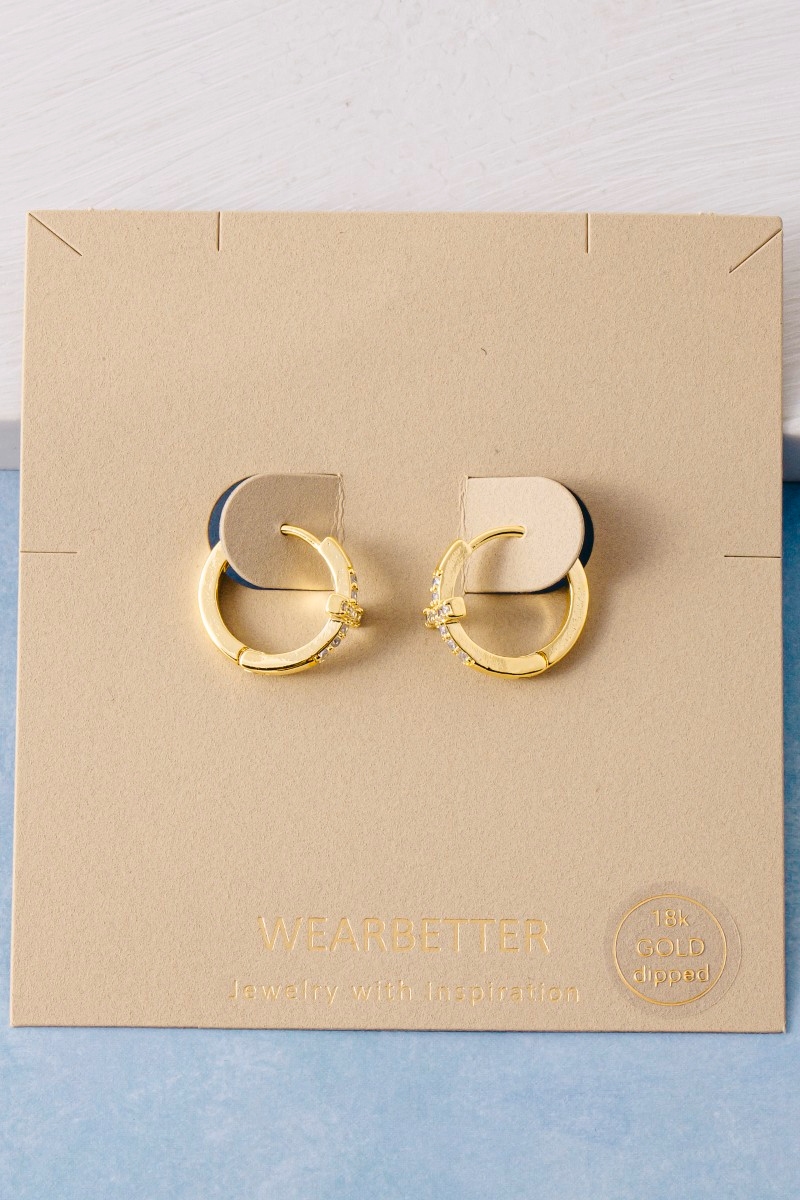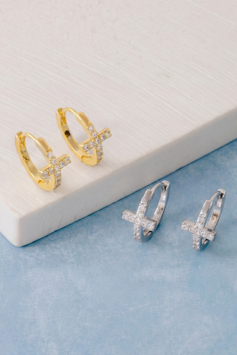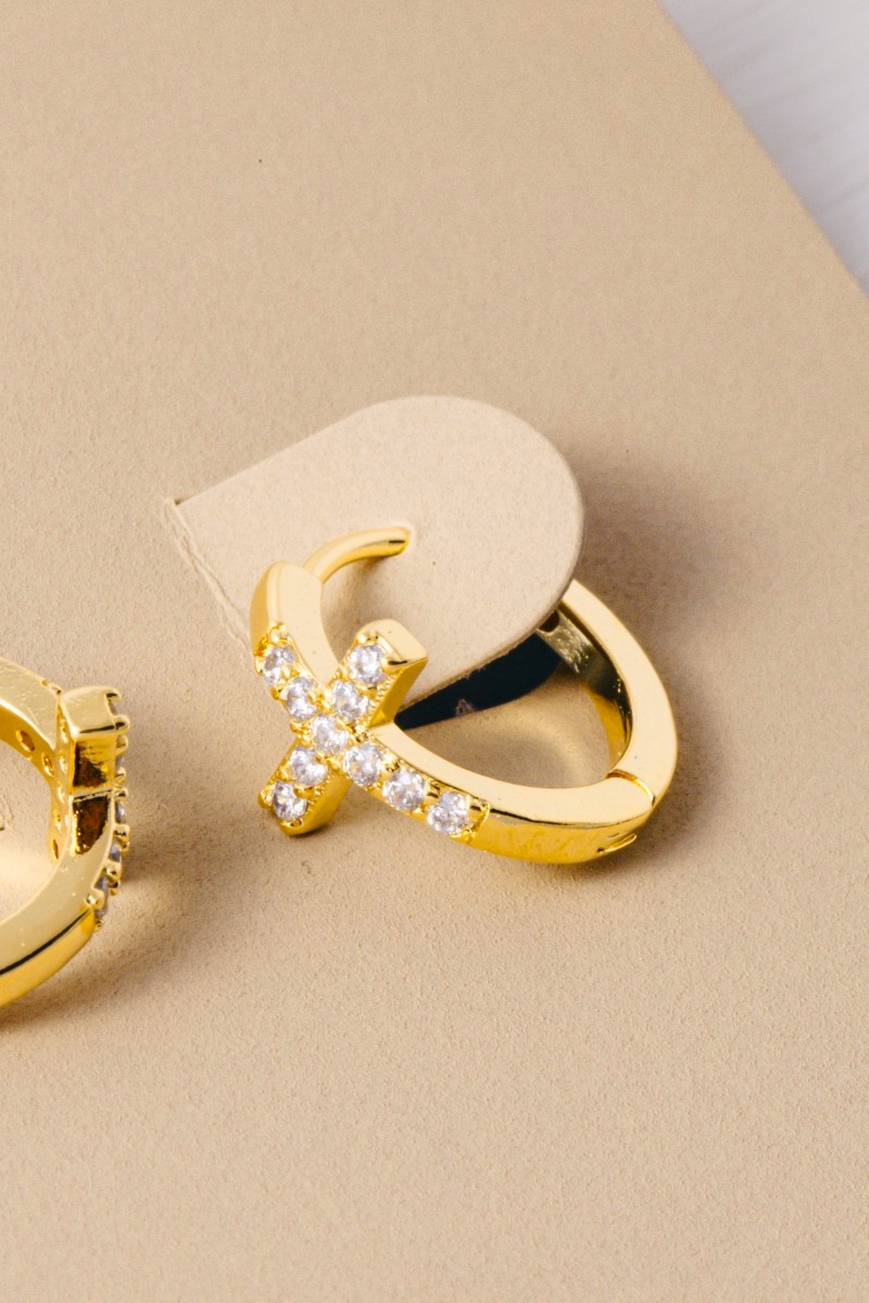 • This pair of hoop earrings brings a luxurious gold dipped cubic zirconia pave cross style. Delight in the intricate details that make this pair of hoop earrings an essential element in expressing your fashion identity.
