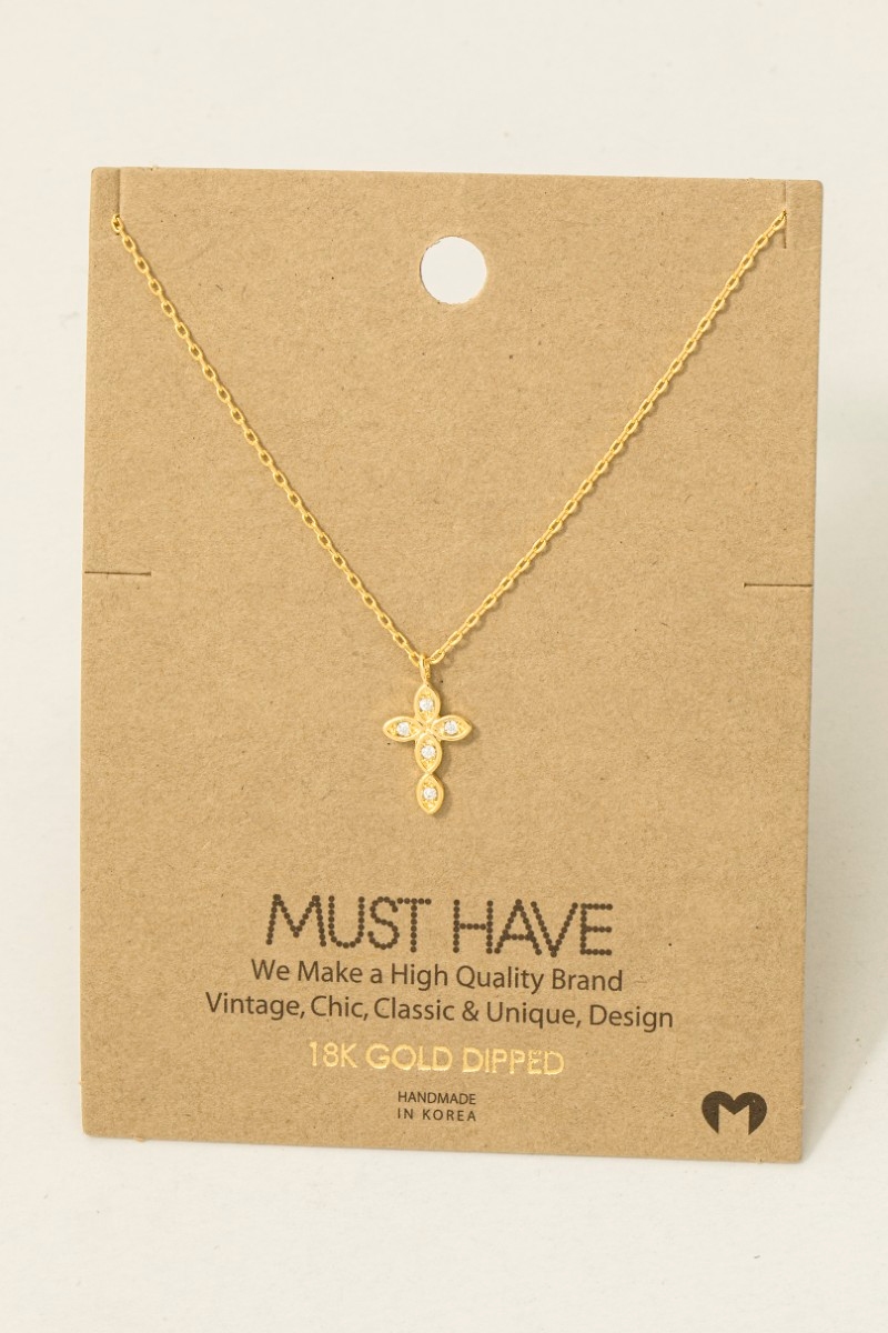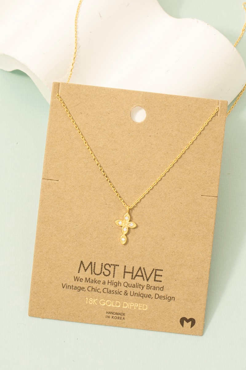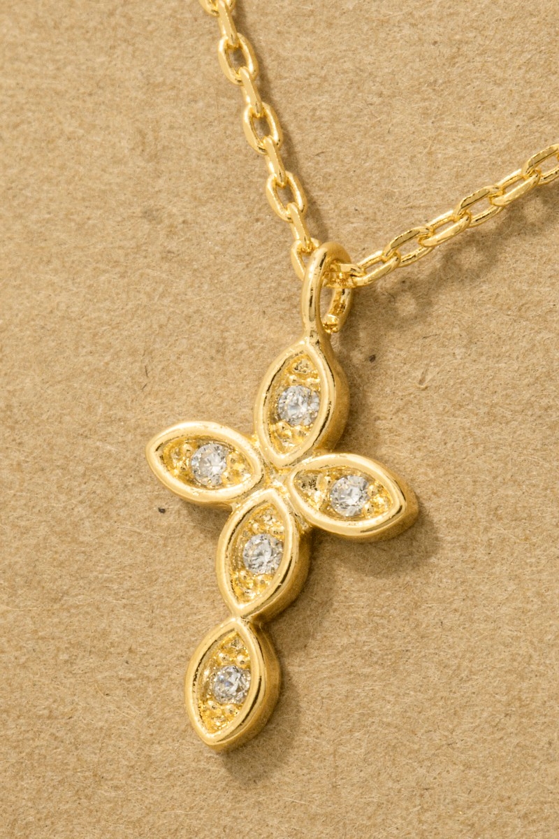 - This trending necklace displays a vibrant gold dipped oval cubic zirconia studded cross pendant necklace style. Celebrate individual style with this versatile, eye-catching addition.