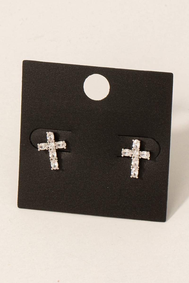 - This pair of stud earrings showcases a timeless gold dipped cz studded cross style. Celebrate individual style with this versatile, eye-catching addition.