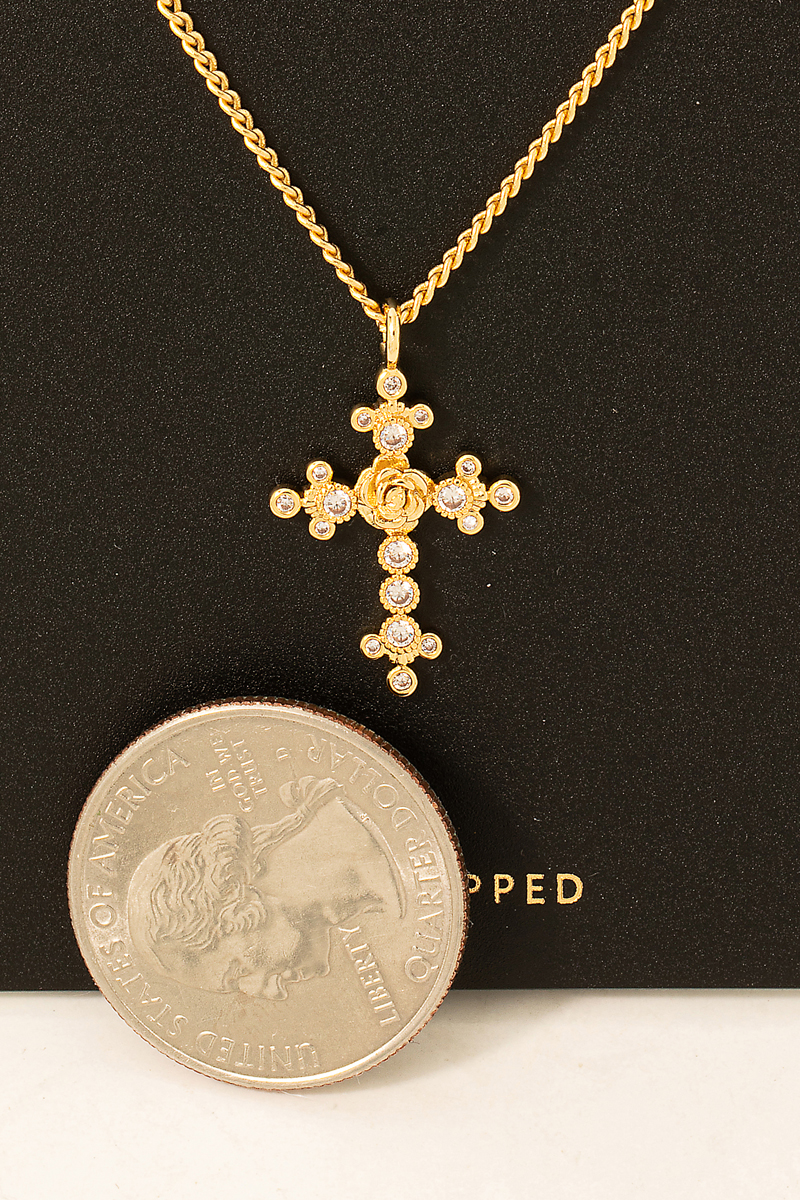 • This necklace displays a vibrant gold dipped studded cross pendant style. Step into a world of refined taste as this accessory effortlessly refines the details of your outfit.