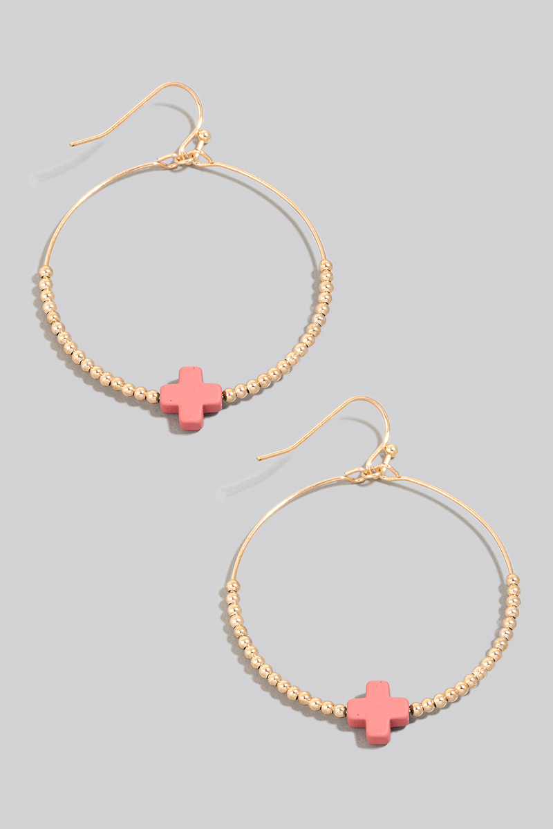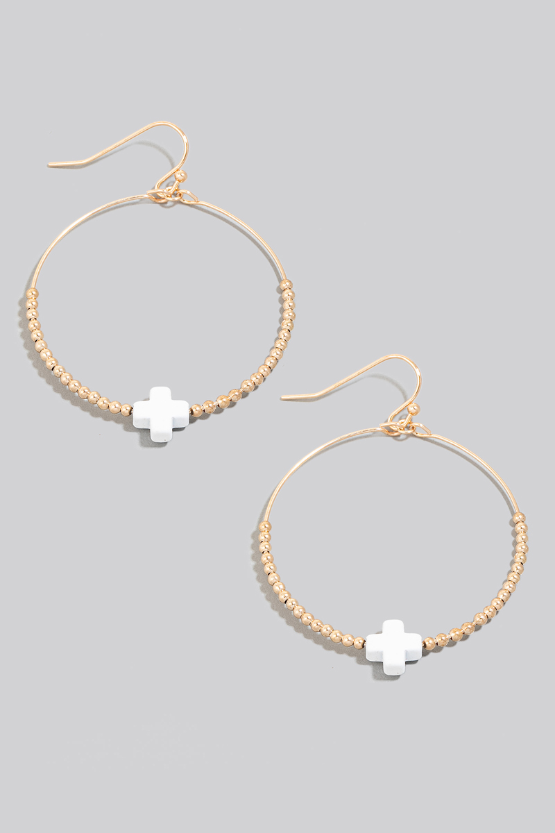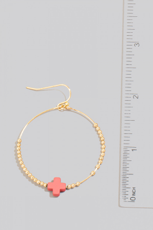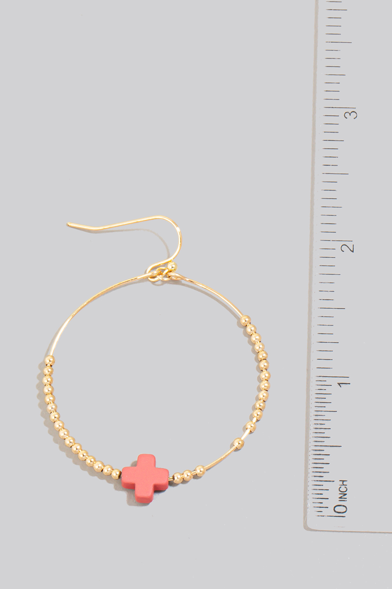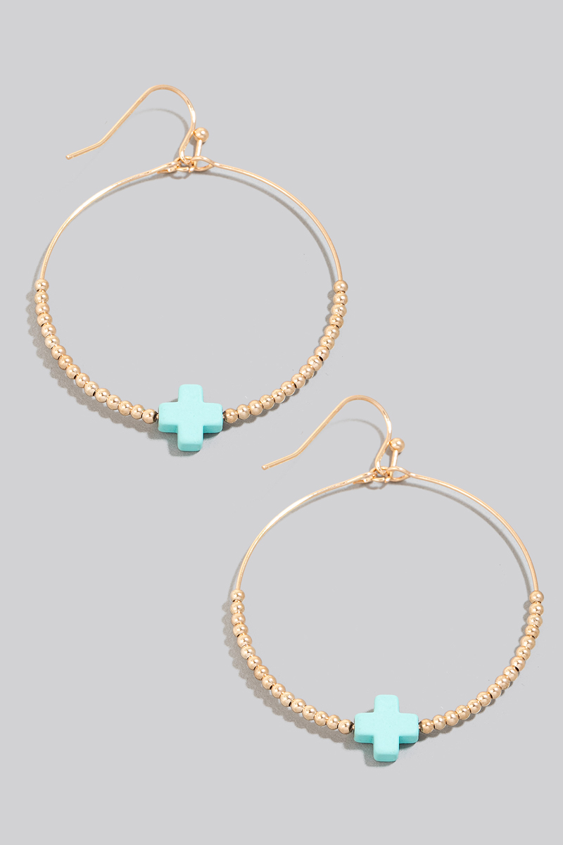 - This pair of drop earrings displays a fashionable mini stone cross charm beaded hoop style. Elevate your ensemble with this chic, timeless pair of drop earrings.