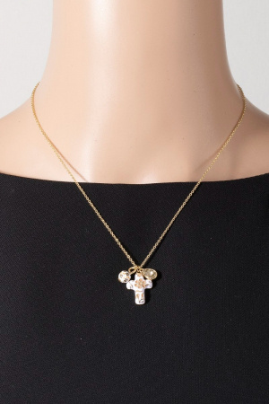 Gold Dipped Cross Pendant Chip Stone Beaded Necklace
