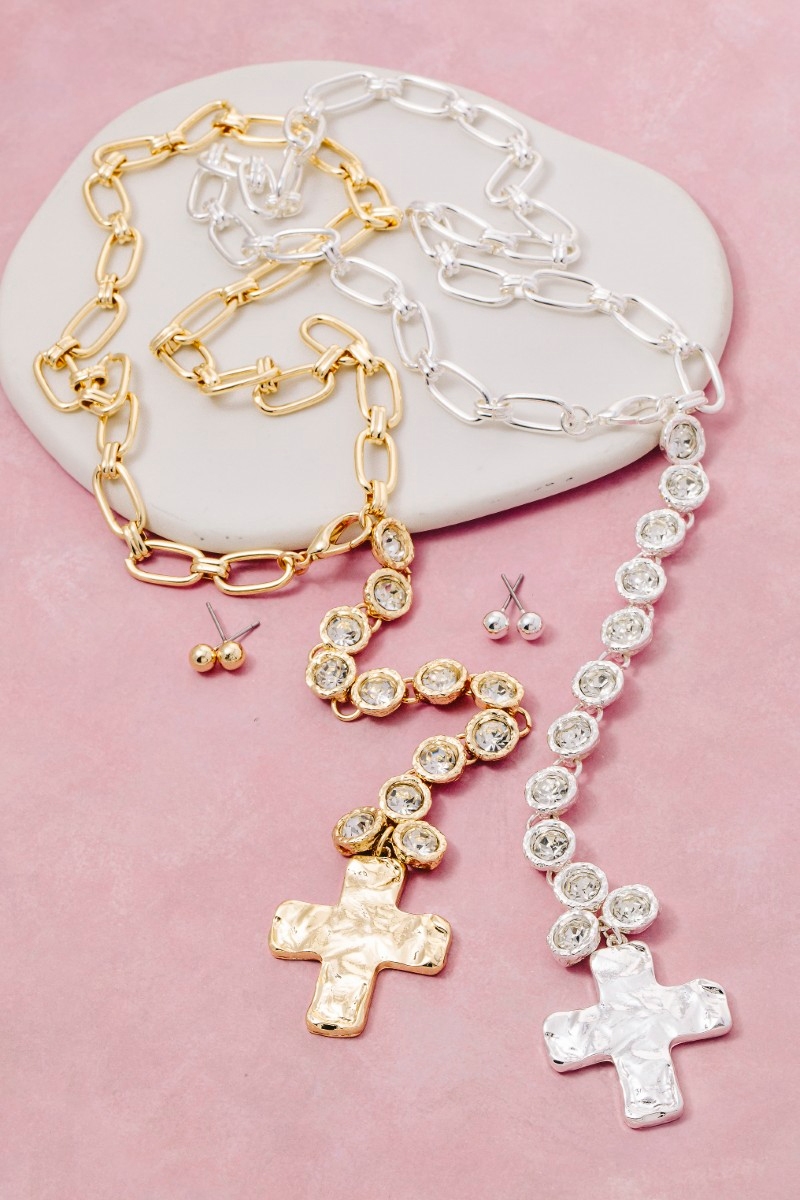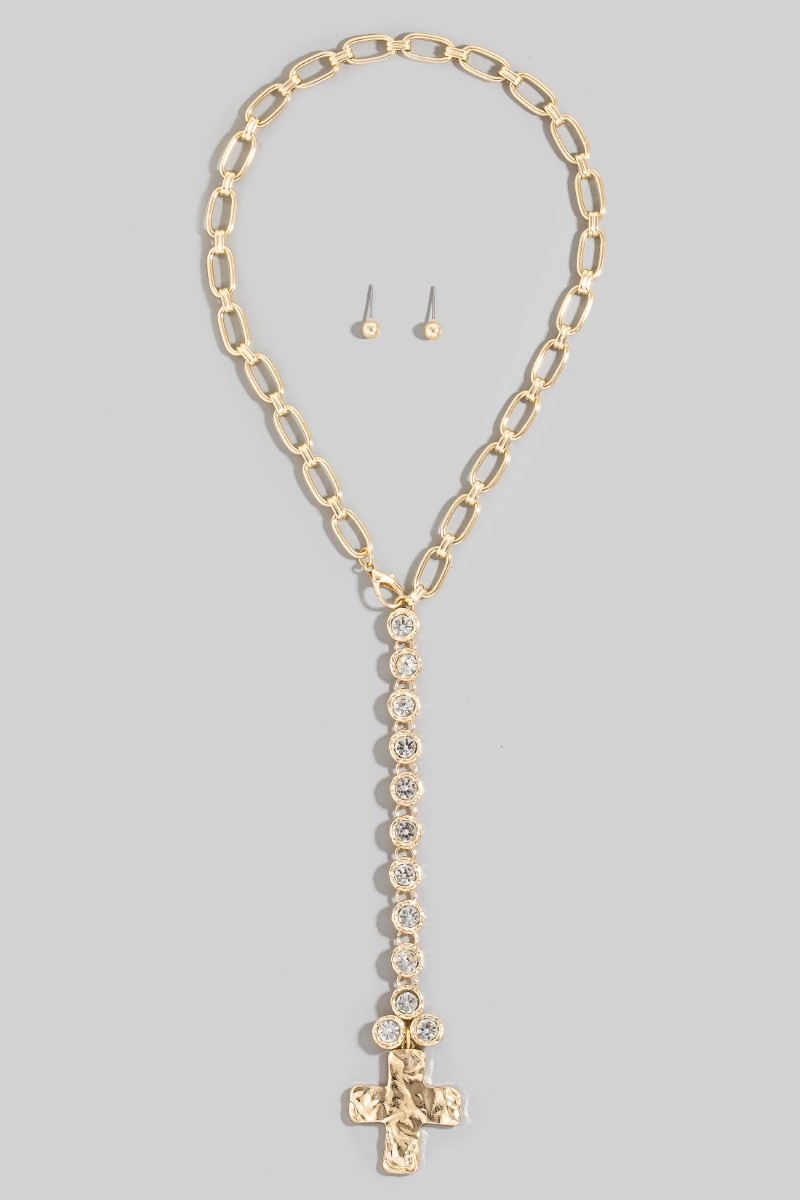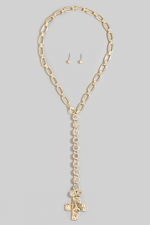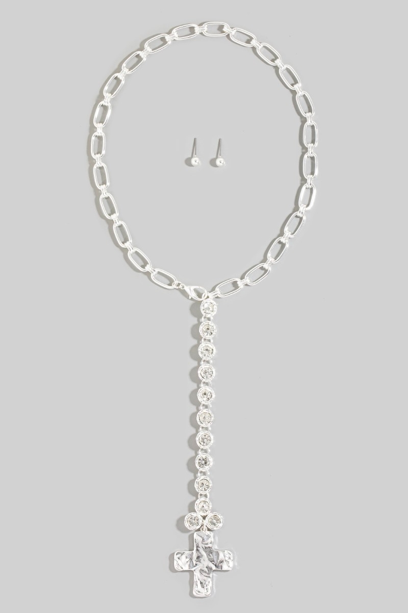 • This necklace set brings a stunning chain link cross pendant y style. Indulge in the artistry of accessorizing with this unique piece.