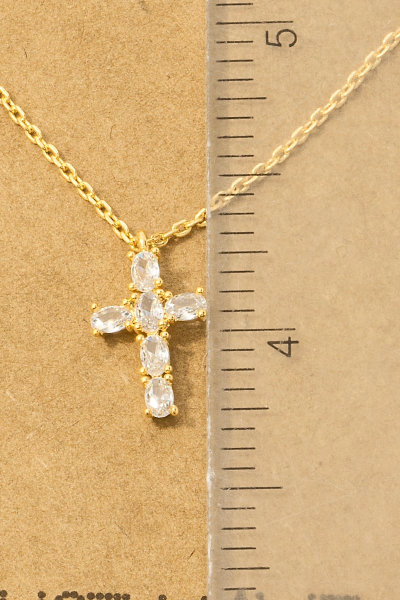 Gold Dipped Cz Studded Cross Pendant Necklace