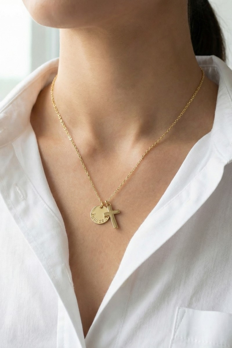 Stainless Steel Cross Disc Pendant Necklace