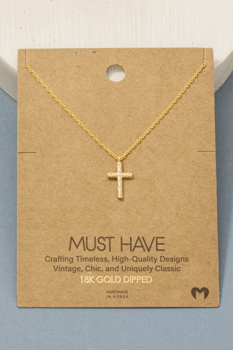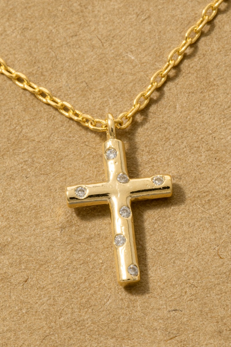 - This pendant necklace brings a stunning gold dipped cubic zirconia studded cross style. Explore a refined sense of style with this pendant necklace, seamlessly elevating the chic factor of your look.