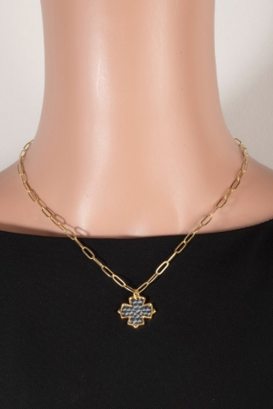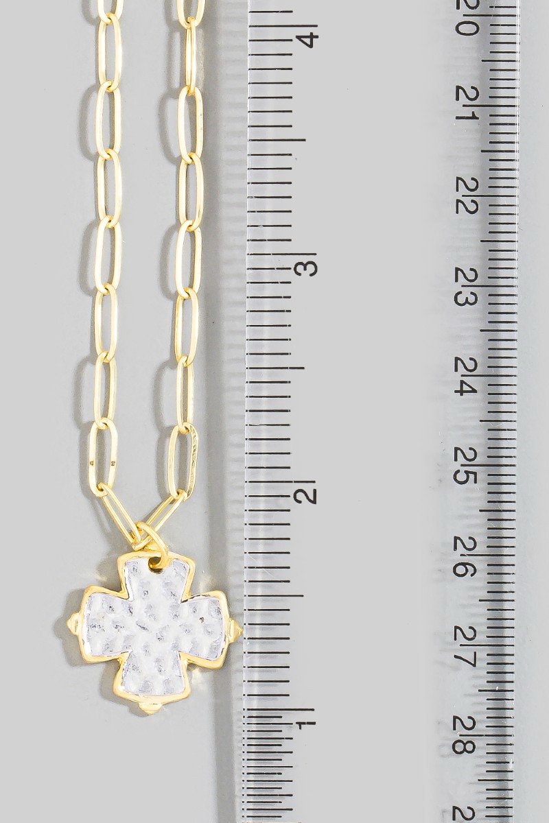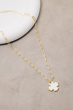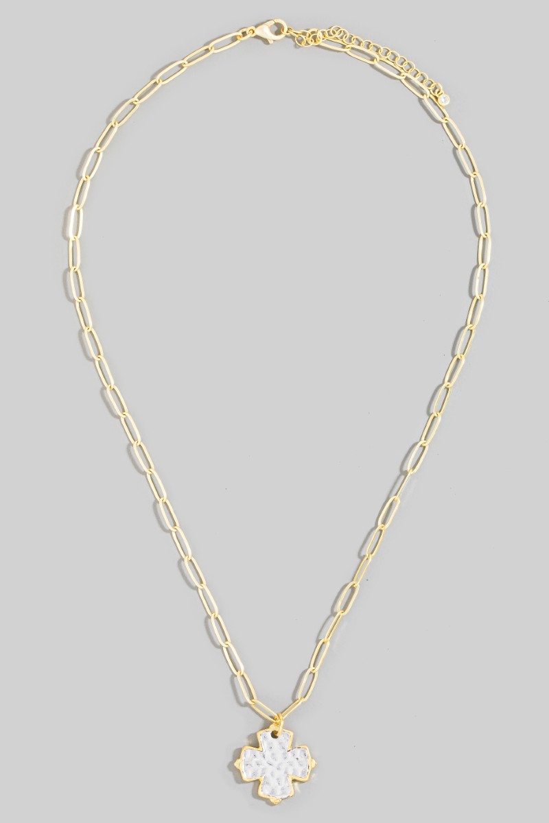 - This necklace brings a unique gold dipped hammered two tone clover pendant style. Unveil a new dimension of sophistication as this necklace effortlessly enhances the elegance of your ensemble.
