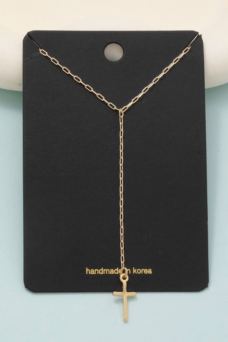 - This chain necklace displays a fashionable metallic cross pendant y style. Step into a world of refined taste as this chain necklace effortlessly refines the details of your outfit.