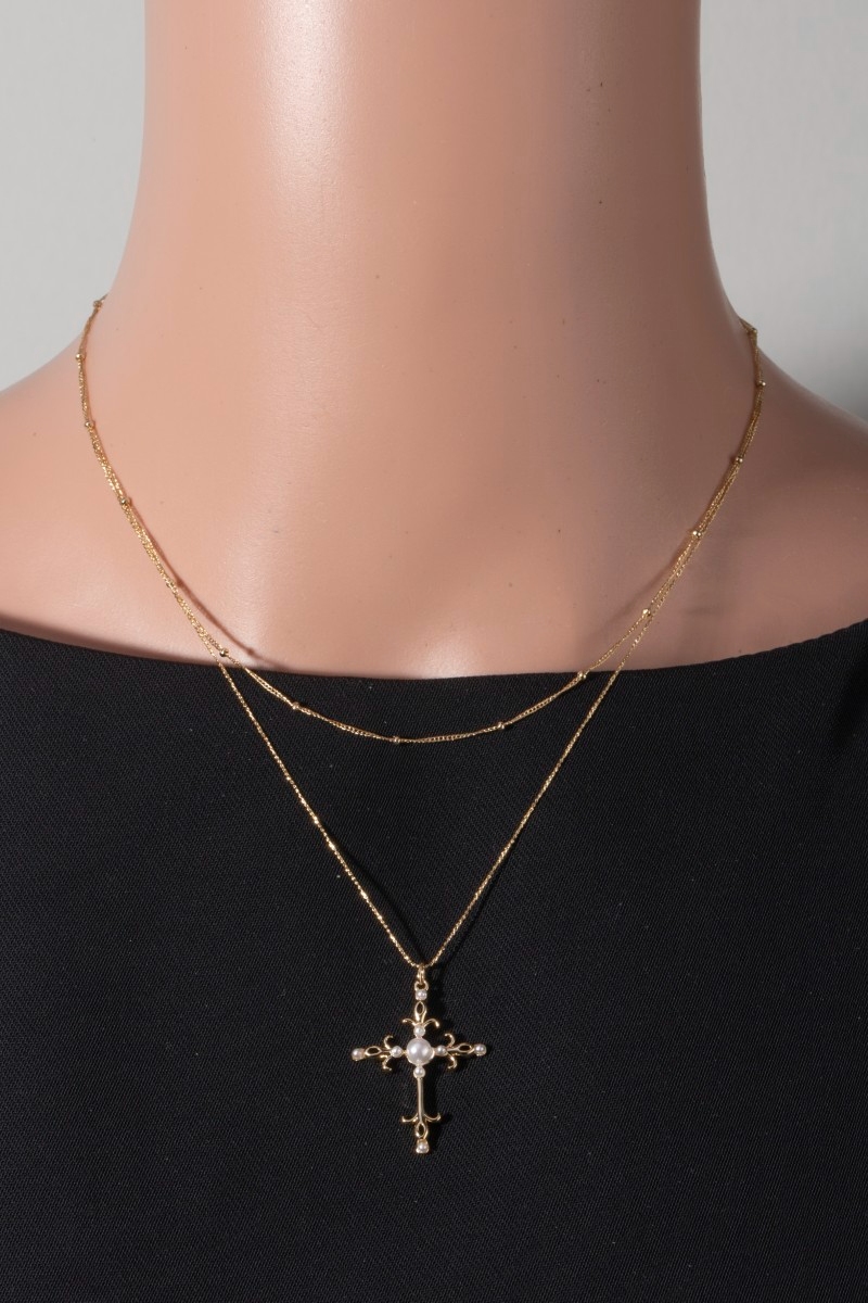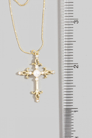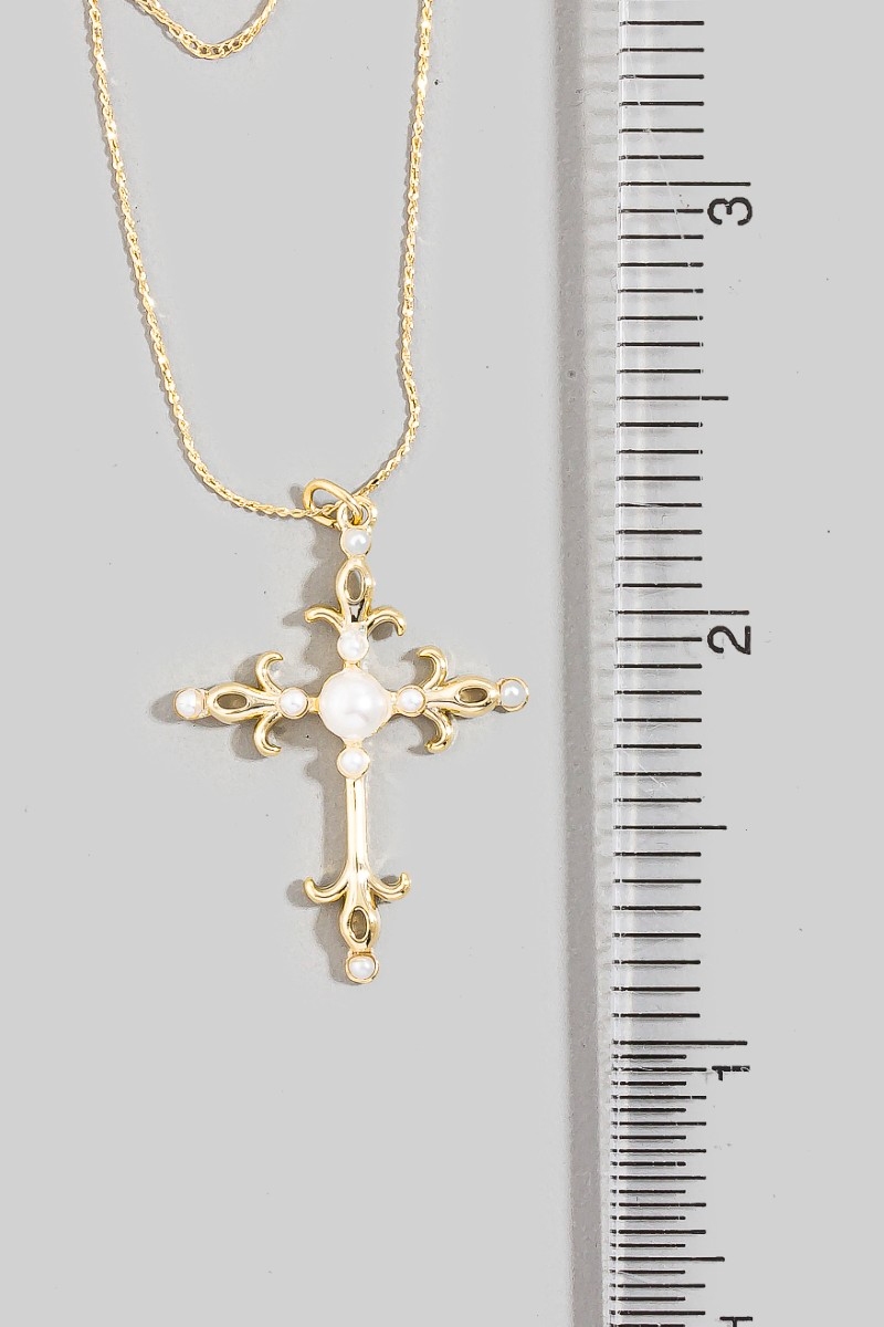 - This pendant necklace showcases a timeless pearl cross style. Indulge in the allure of exquisite craftsmanship as this pendant necklace effortlessly adds a touch of luxury to your attire.