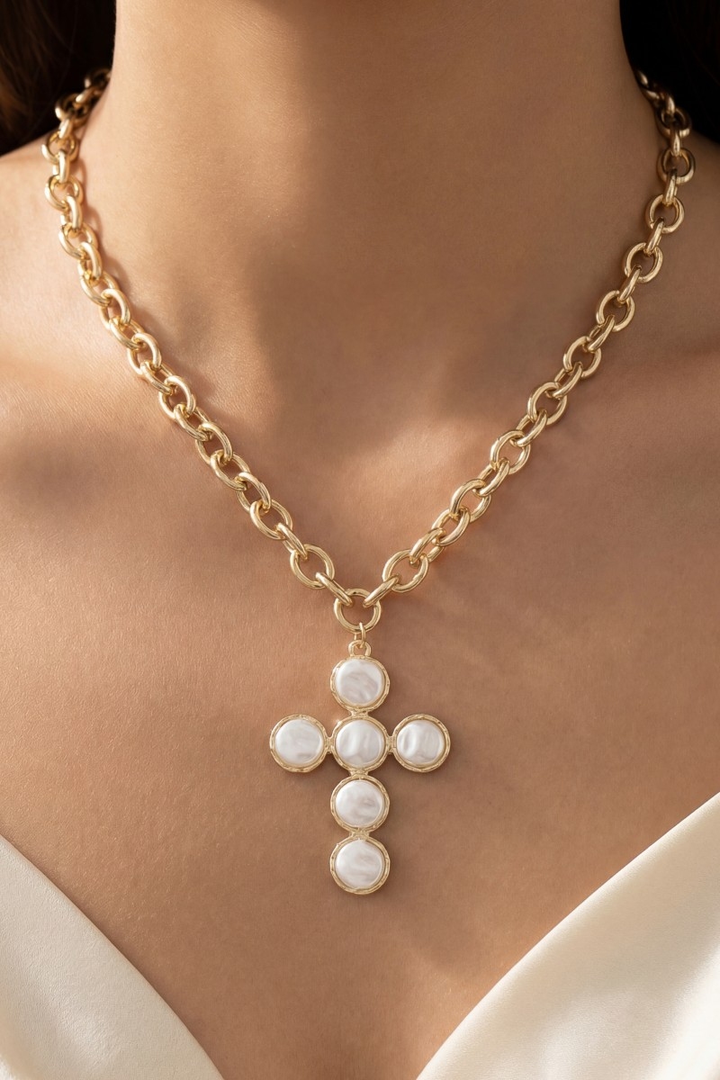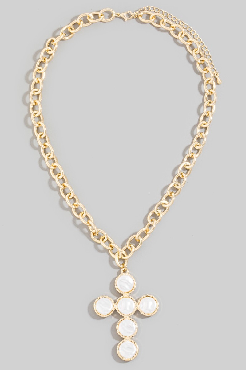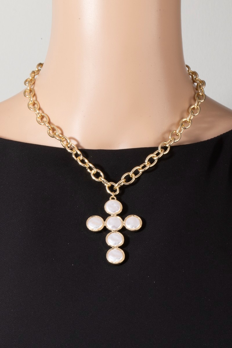 - This pendant necklace showcases a unique pearl discs cross style. Celebrate individuality with this pendant necklace that effortlessly expresses your unique sense of style.