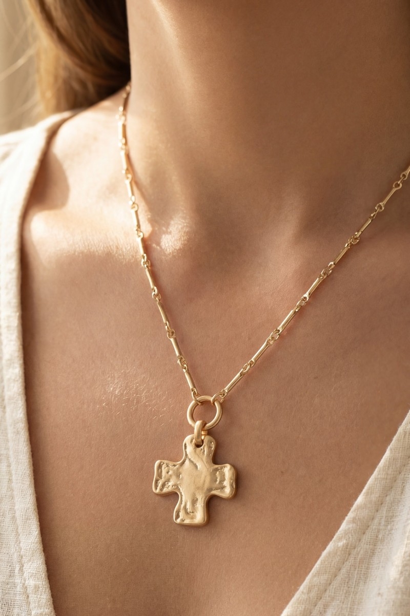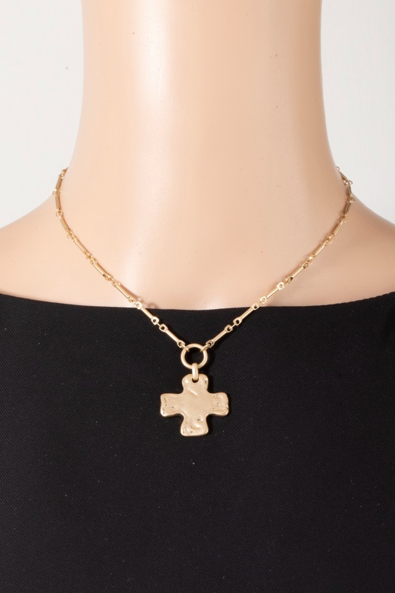 - This chain necklace showcases a timeless warped cross pendant style. Experience refined sophistication with this understated yet stylish piece.
