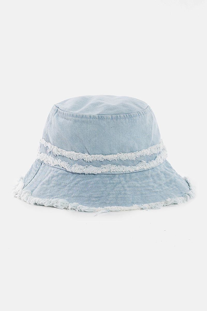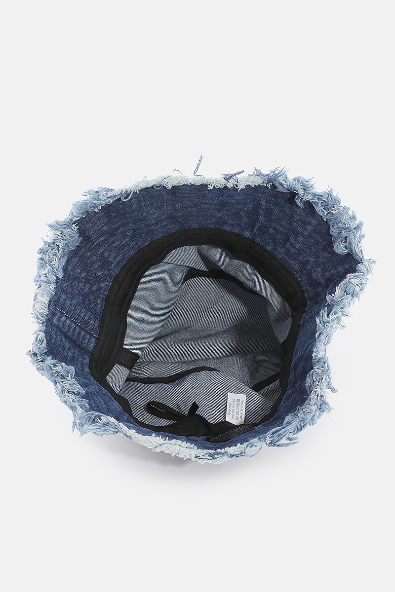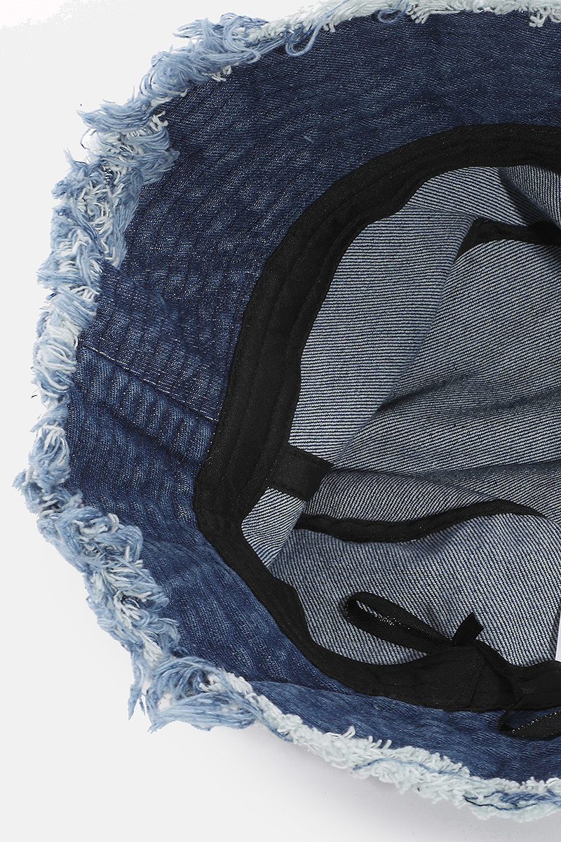 • This bucket hat introduces a stunning fringe trim denim style. Unveil a new dimension of sophistication as this accessory effortlessly enhances the elegance of your ensemble.