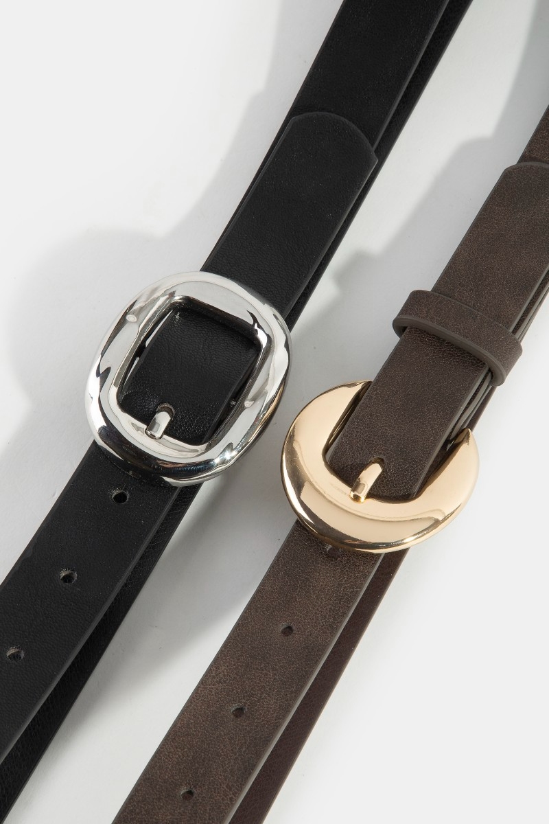 - This belt set introduces a unique vegan leather style. Indulge in the allure of exquisite craftsmanship as this belt set effortlessly adds a touch of luxury to your attire.