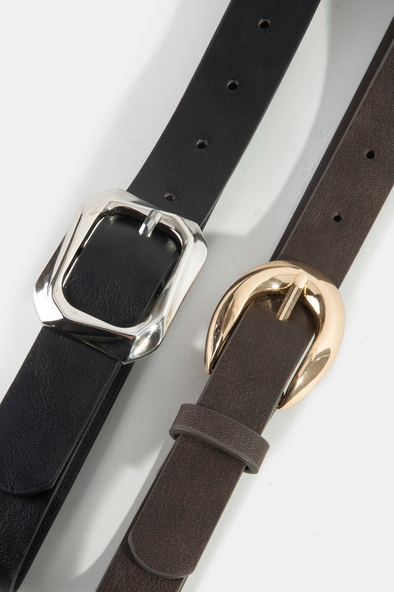 - This belt set showcases a timeless two piece vegan leather style. Explore a blend of classic charm and contemporary flair.