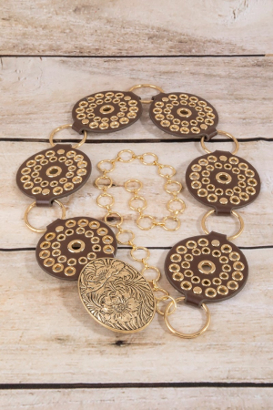 Hammered Medallion Chain Leather Studded Disc Belt