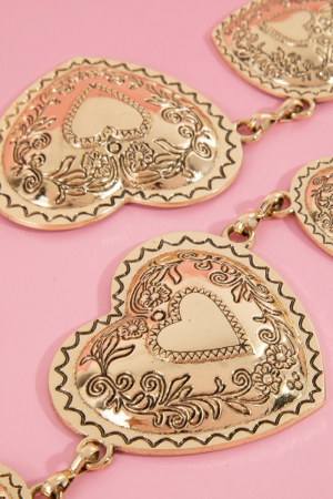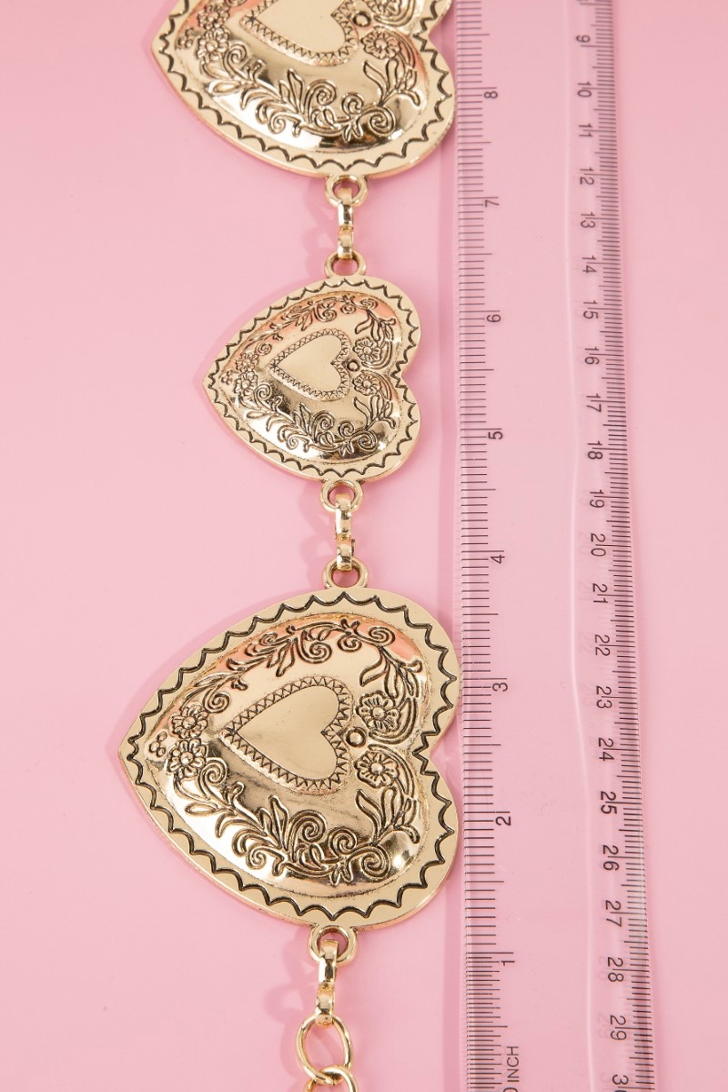 Gold Hammered Heart Link Chain Belt