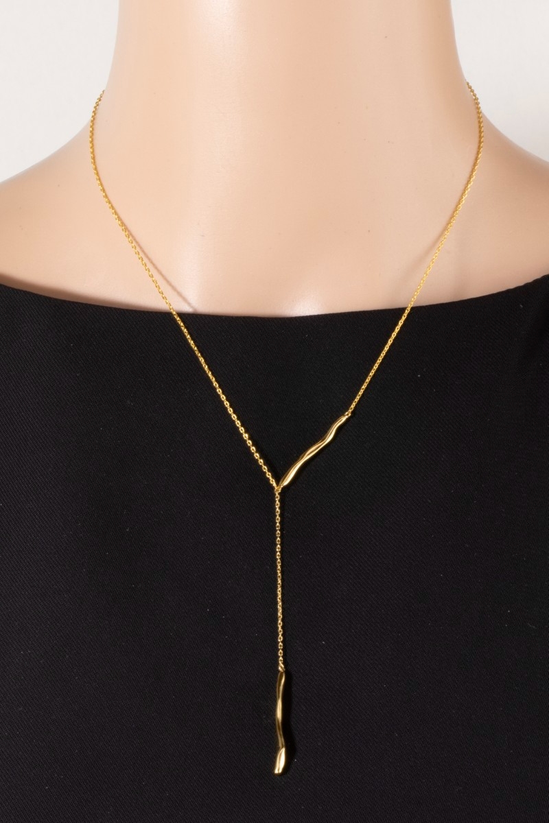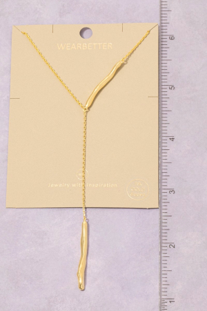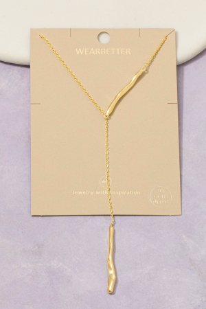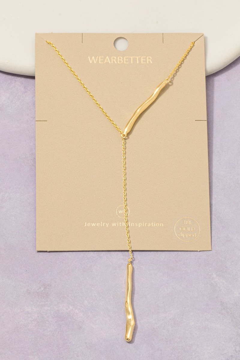 • This chain necklace displays a vibrant gold dipped double irregular bar y style. Experience refined sophistication with this understated yet stylish piece.