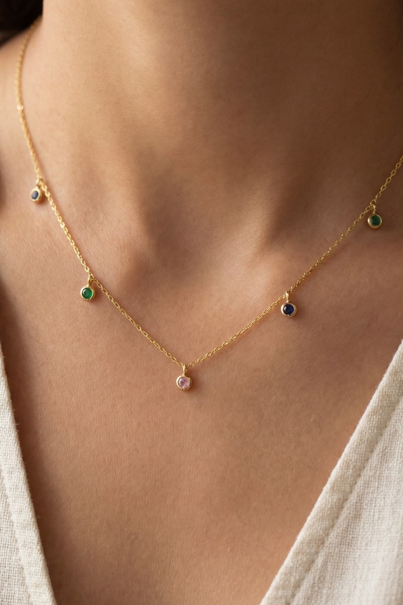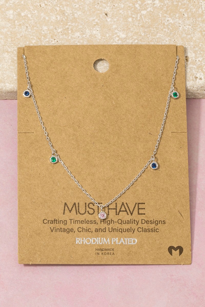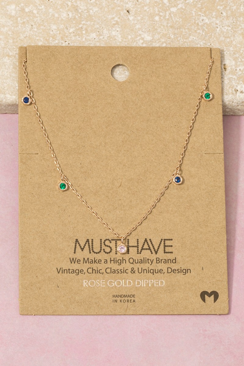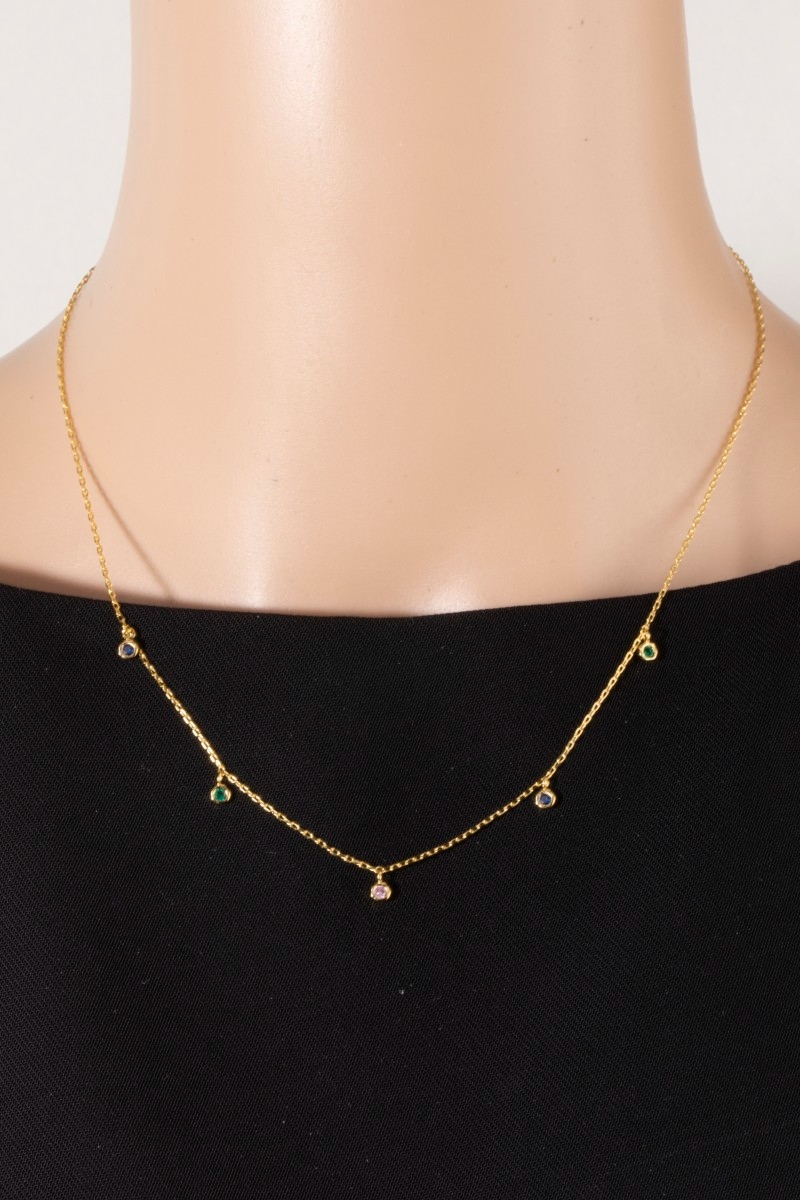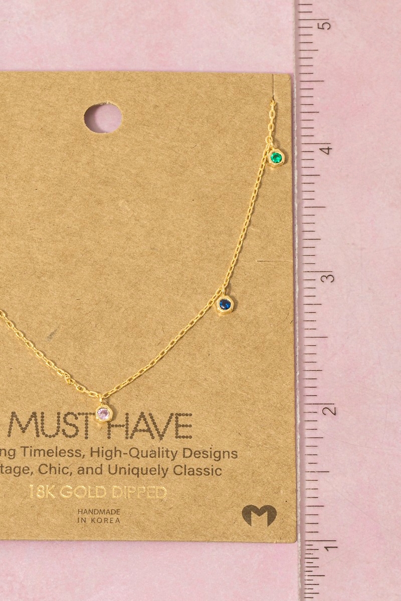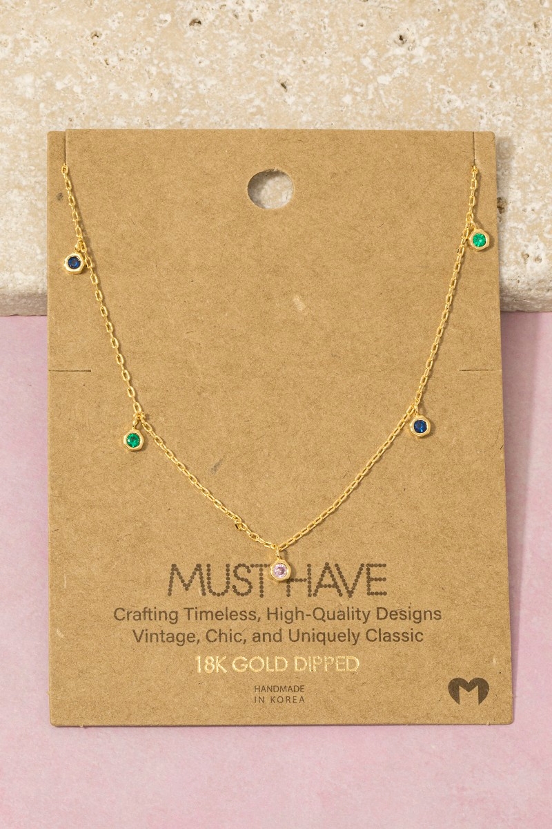 - This chain necklace showcases a timeless gold dipped mini station cubic zirconia charms style. Savor the allure of detailed craftsmanship in this exquisite chain necklace.