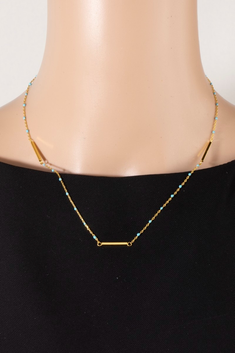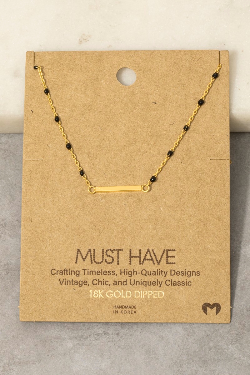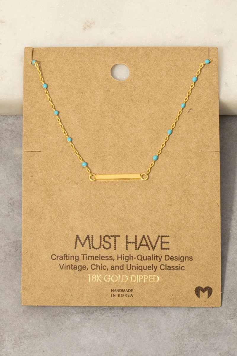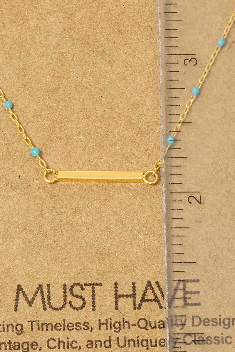 • This pendant necklace brings a unique gold dipped bar pendant enamel accent necklace style. Redefine your look effortlessly with this standout, on-trend piece.