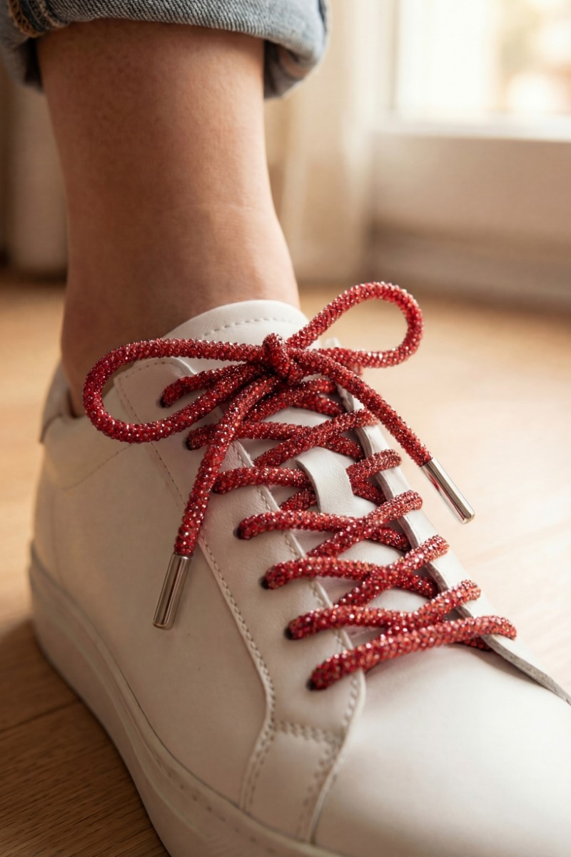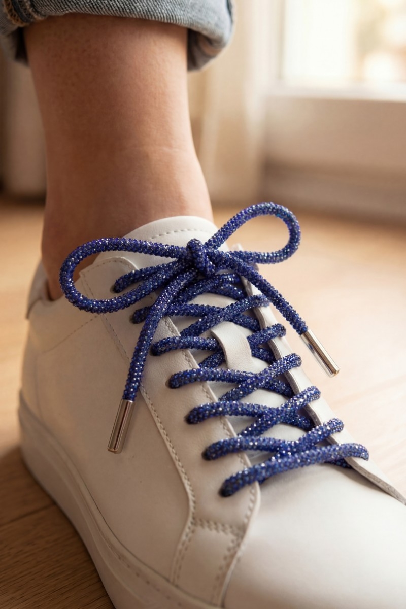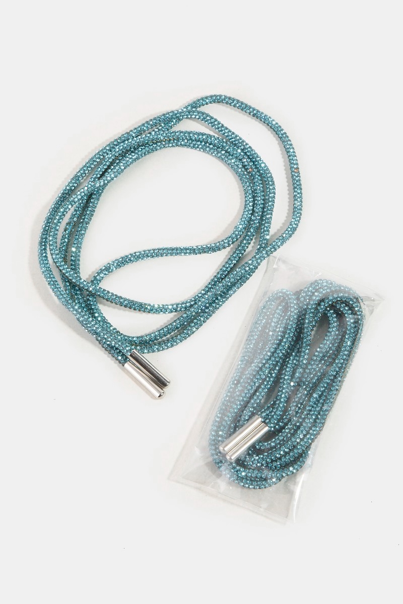 • This accessory showcases a unique pave metal tipped shoelace style. Indulge in the artistry of accessorizing with this unique piece.