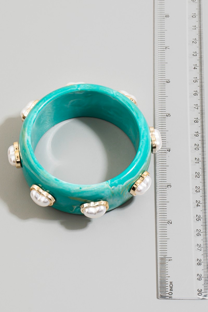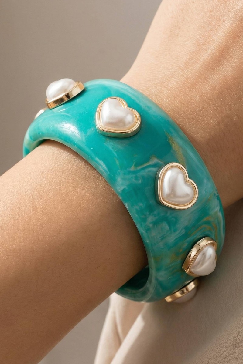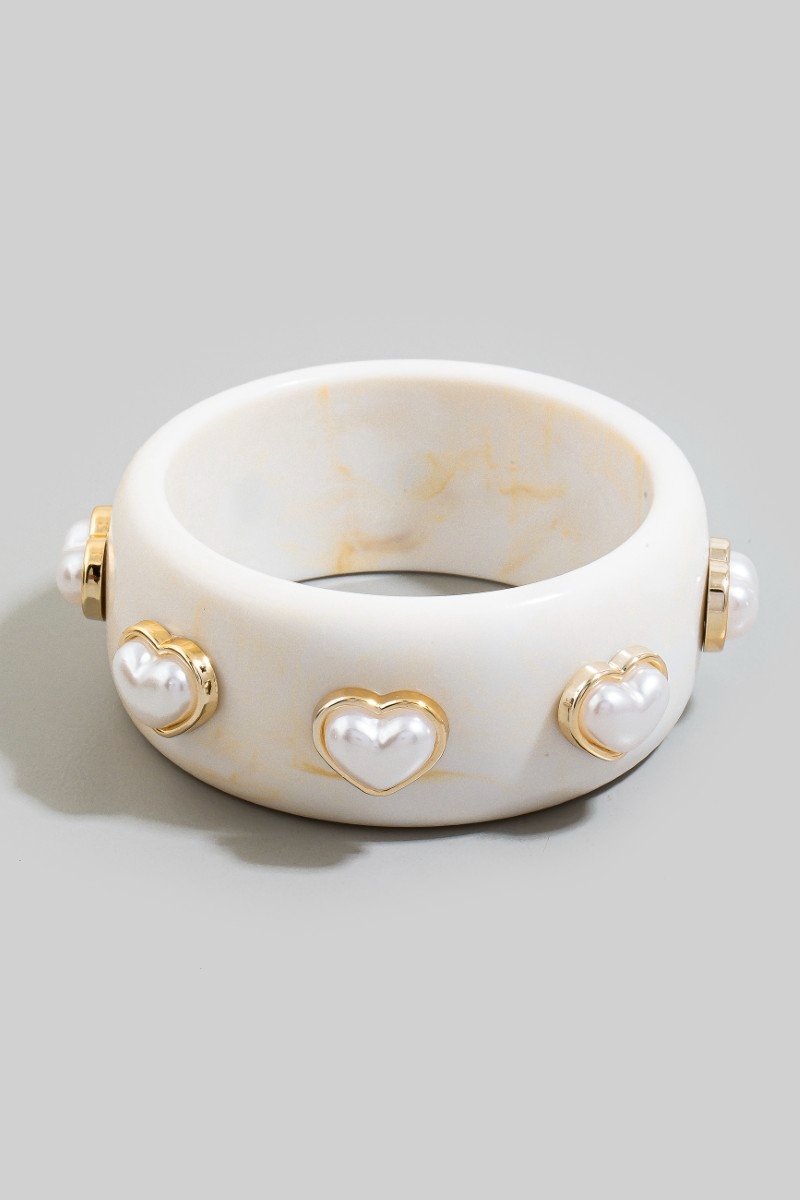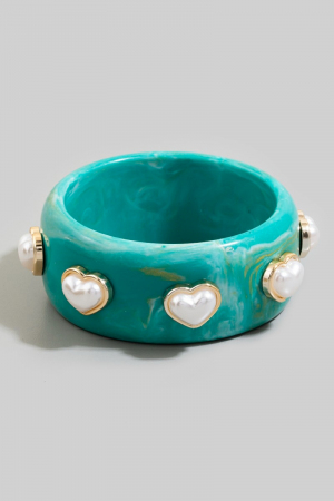 • This bangle bracelet introduces a unique wide marble resin heart pearl studded style. Delight in the nuanced details that make this bangle bracelet a testament to fine design and impeccable taste.