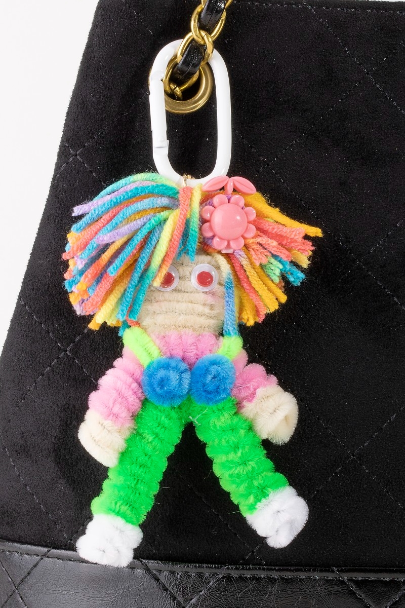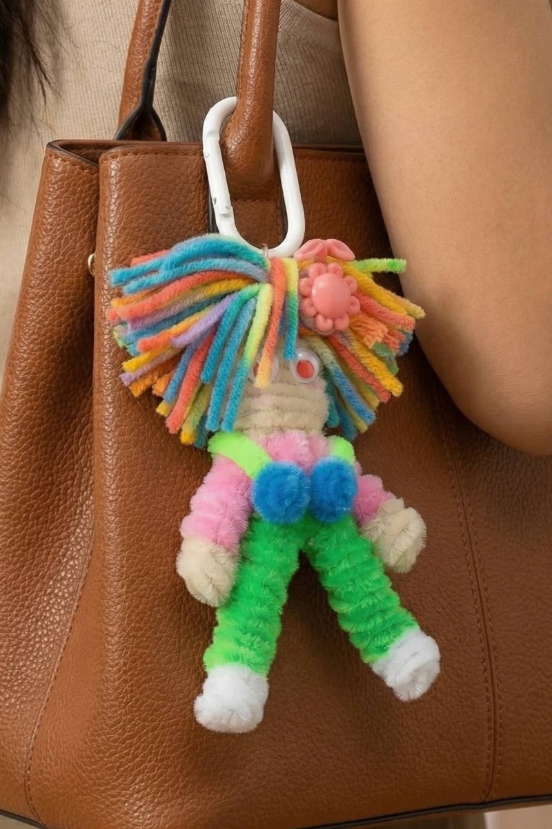 • This keychain displays a fashionable rainbow handmade doll bag charm style. Elevate your ensemble with this keychain that effortlessly captures the essence of refined fashion.