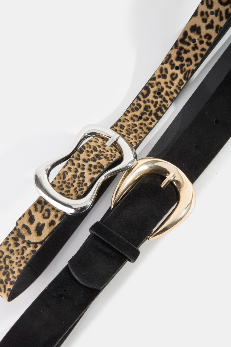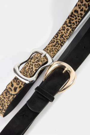 • This belt set brings a unique two piece black leopard vegan leather style. Explore a blend of classic charm and contemporary flair.