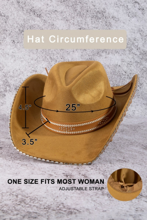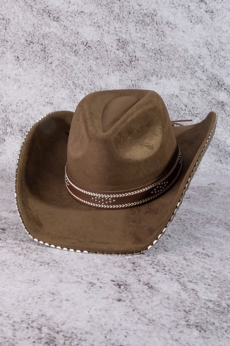 - This cowboy hat adds a modern western studded trim style. Explore a refined sense of style with this cowboy hat, seamlessly elevating the chic factor of your look.