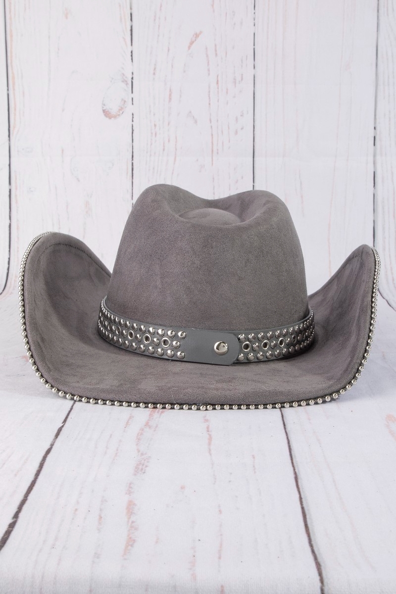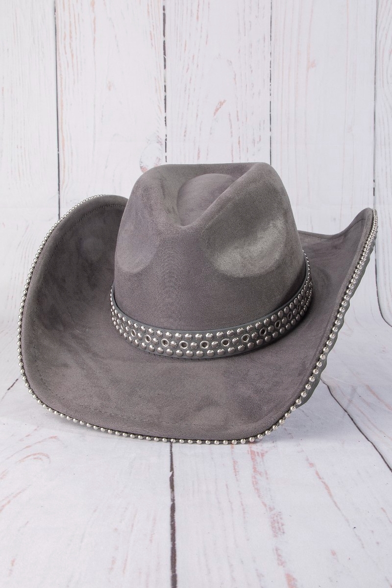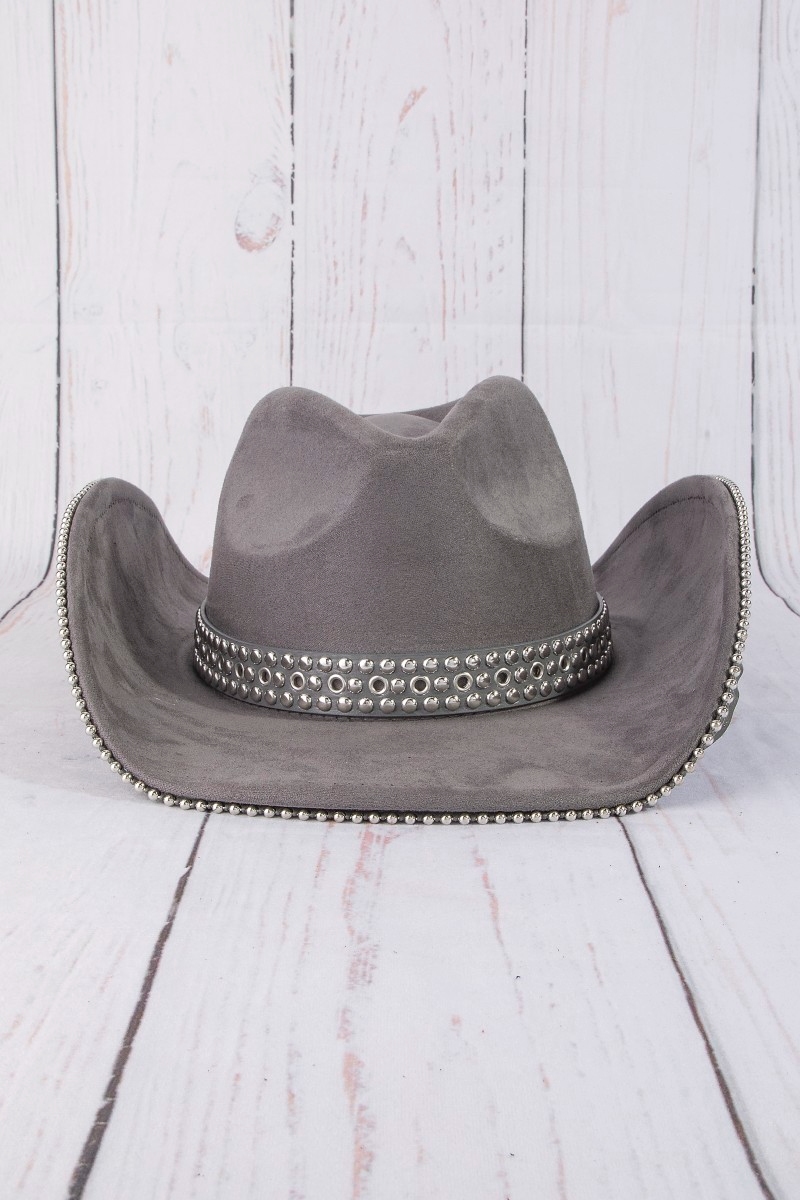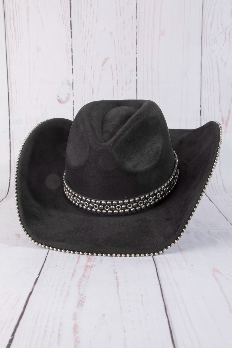 - This cowboy hat introduces a unique studded trim western style. Explore a refined sense of style with this cowboy hat, seamlessly elevating the chic factor of your look.