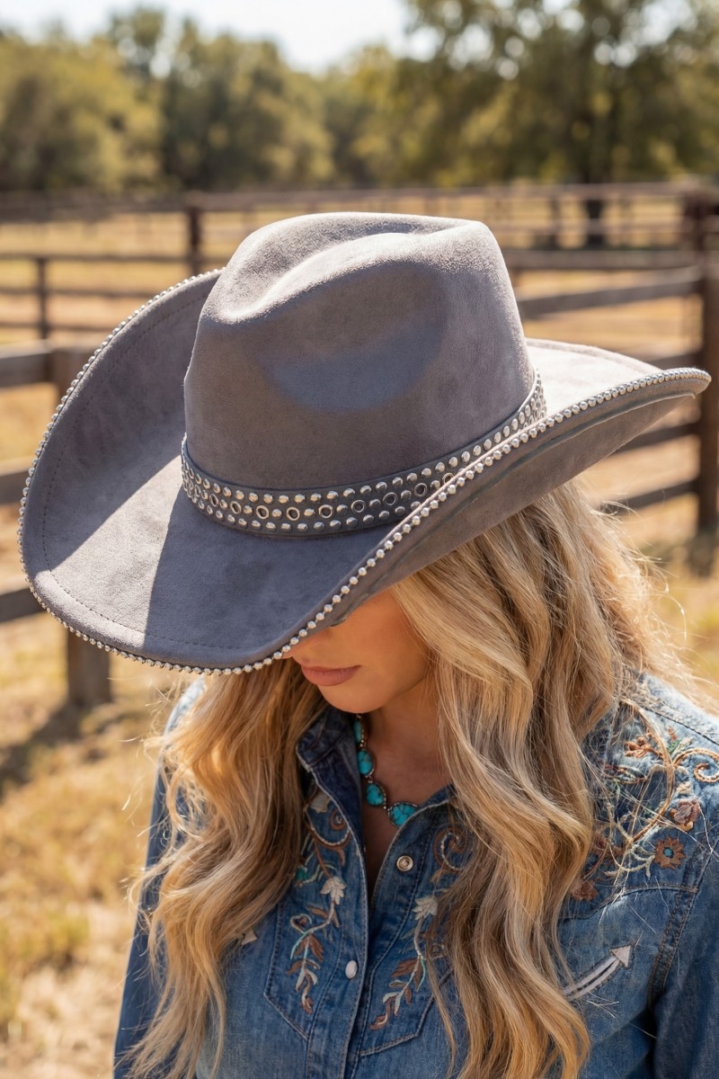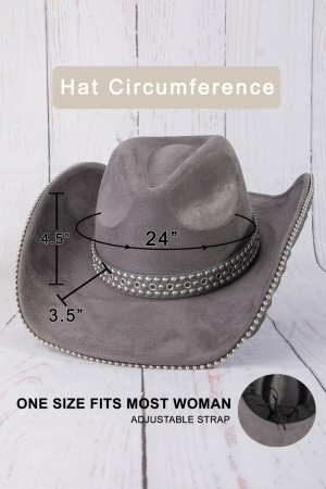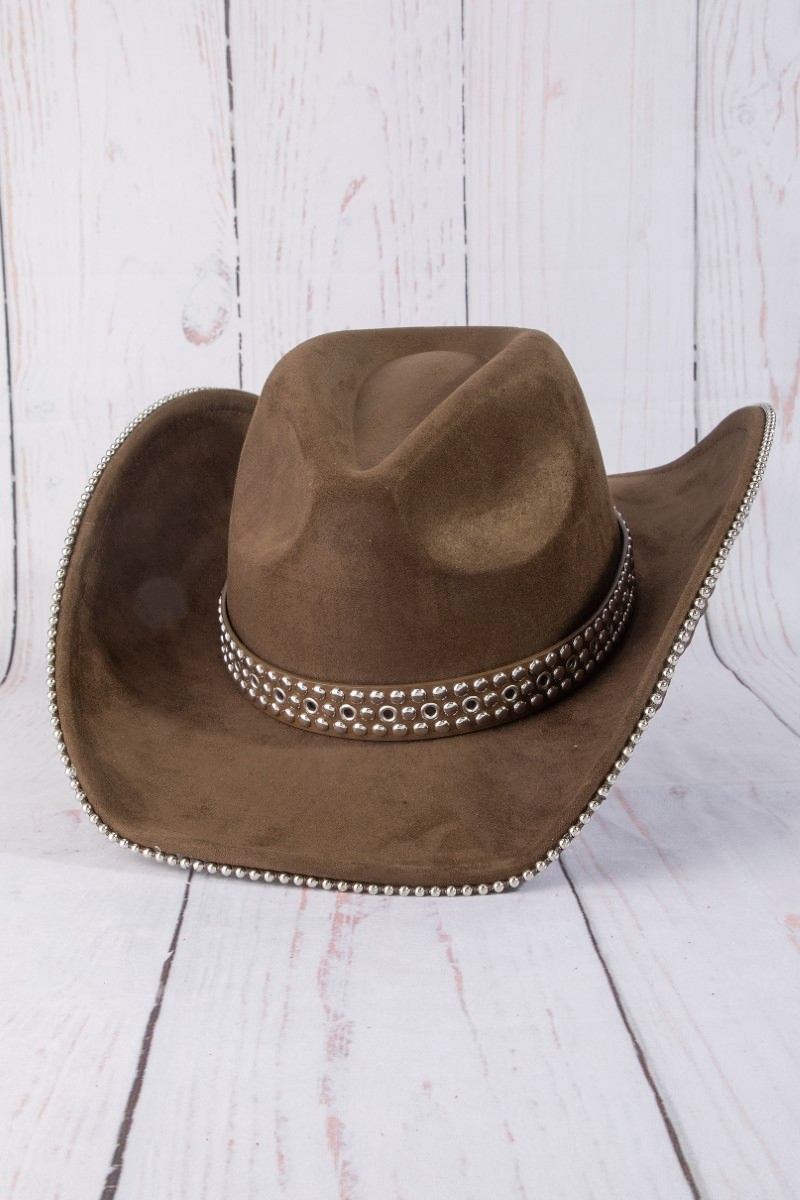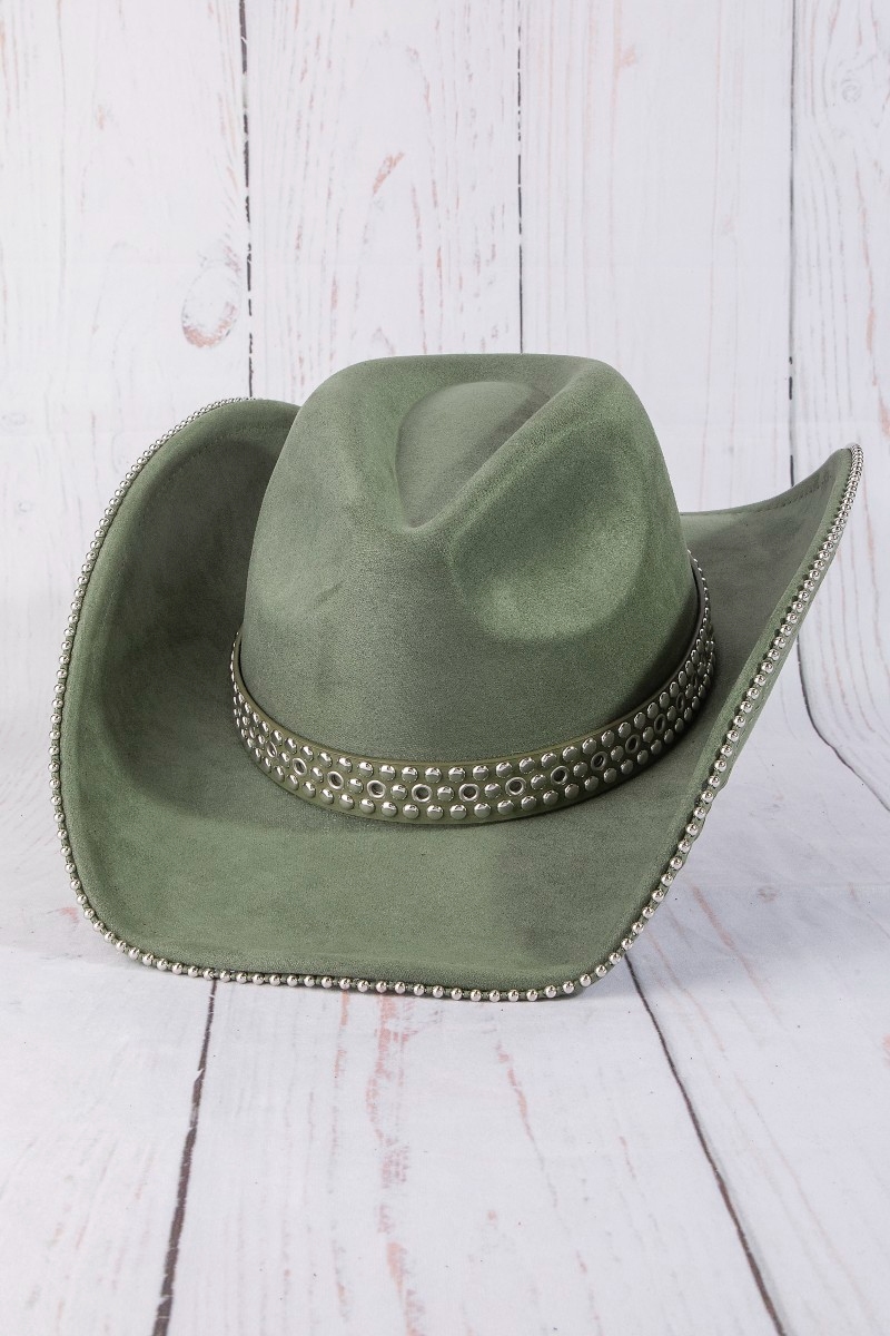 - This cowboy hat introduces a unique studded trim western style. Explore a refined sense of style with this cowboy hat, seamlessly elevating the chic factor of your look.