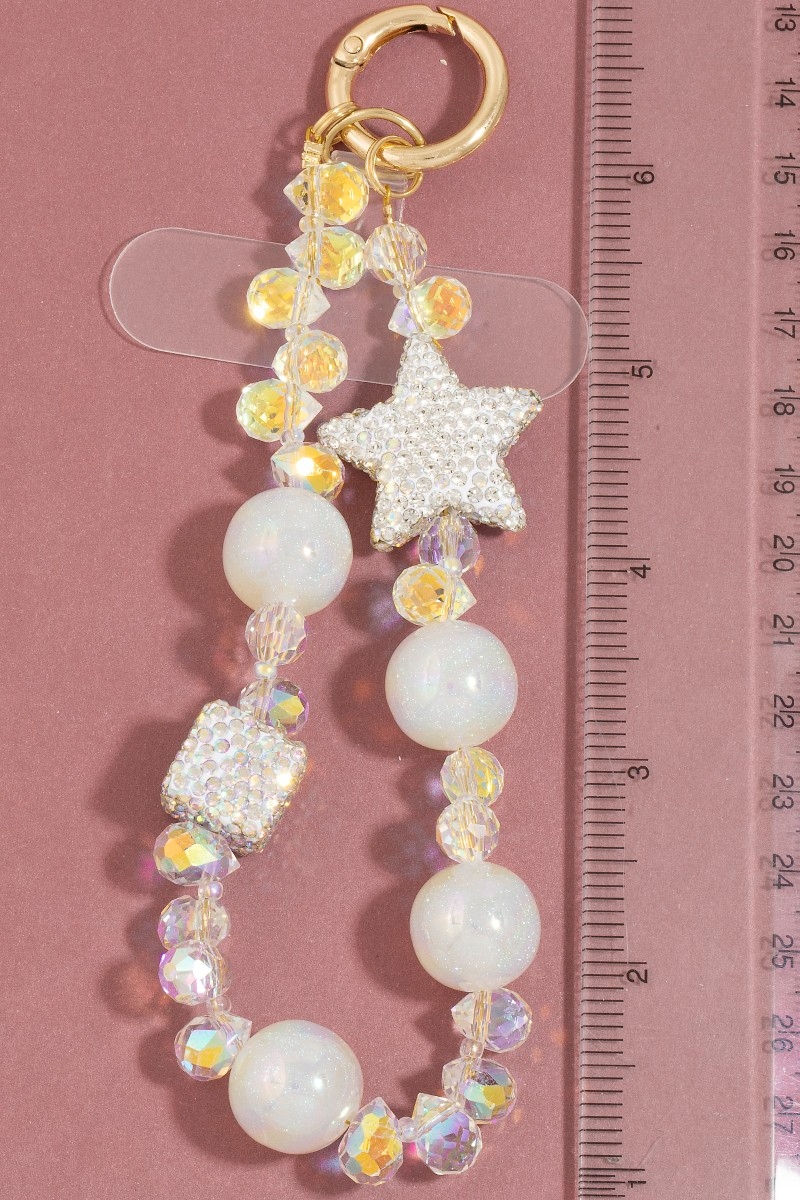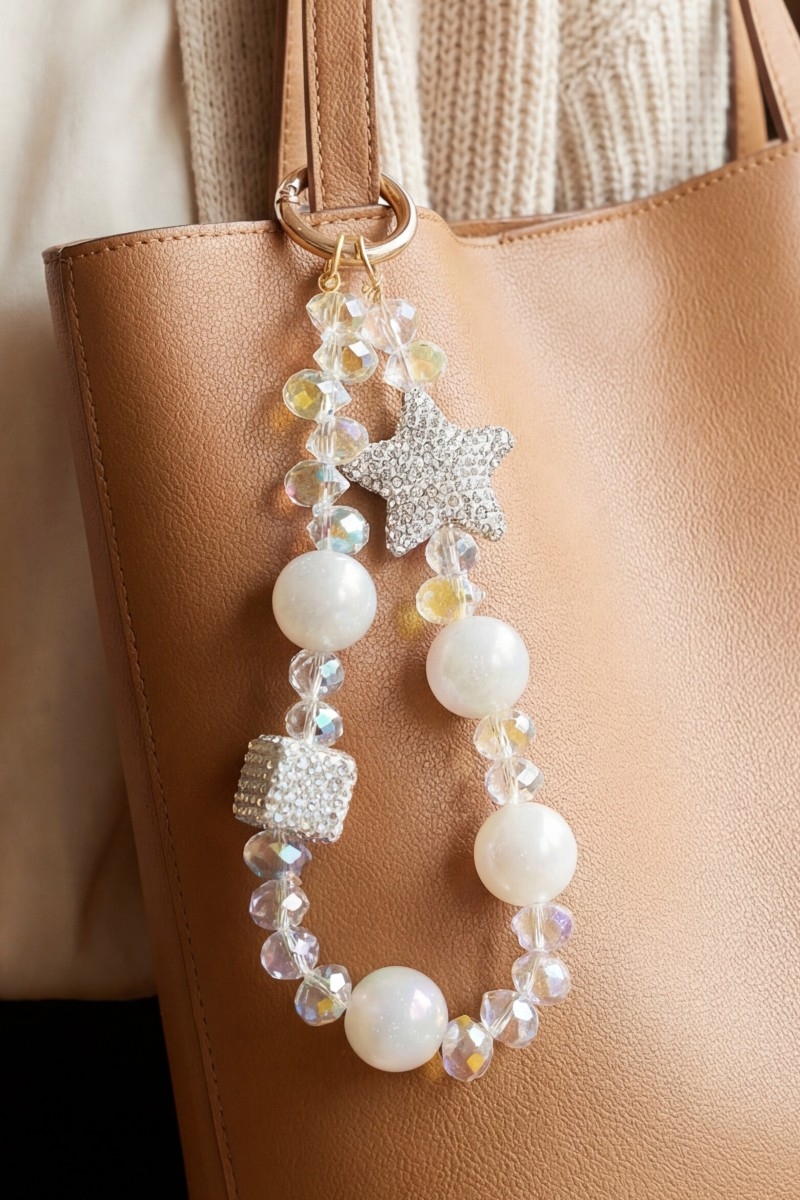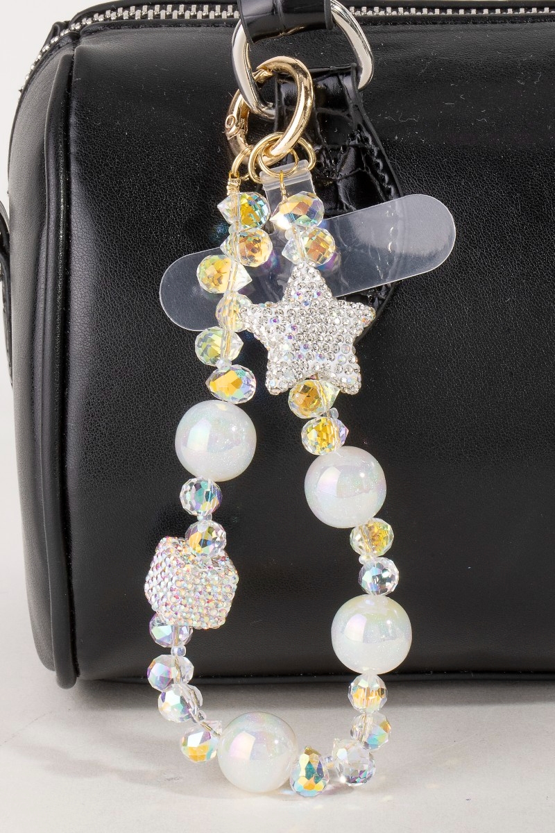 • This bag charm introduces a stunning assorted crystal beads with stars style. Immerse yourself in fashion finesse with this statement bag charm.