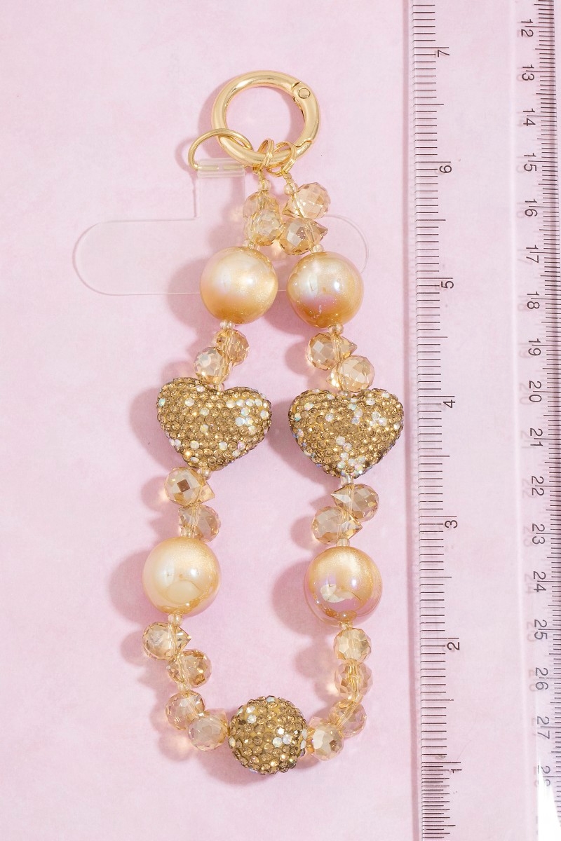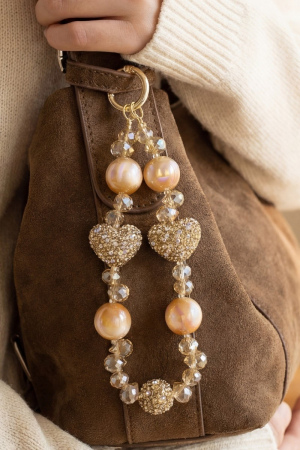 - This bag charm displays a fashionable assorted heart beads style. Indulge in the allure of exquisite craftsmanship as this bag charm effortlessly adds a touch of luxury to your attire.