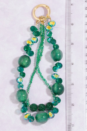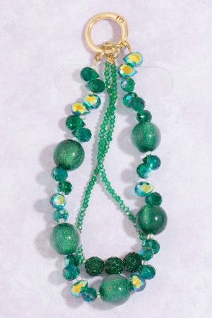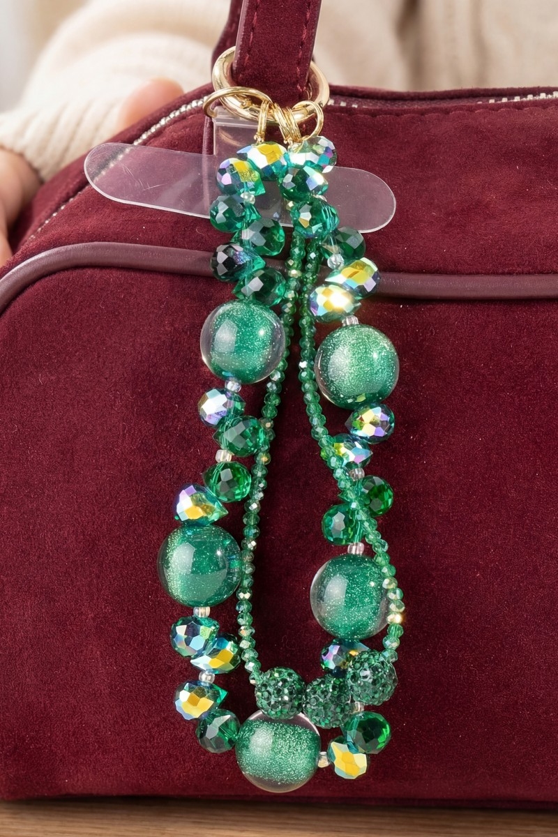 • This bag charm adds a modern assorted green beads style. Experience a burst of creativity in accessorizing as this piece effortlessly sets the tone for your unique style.
