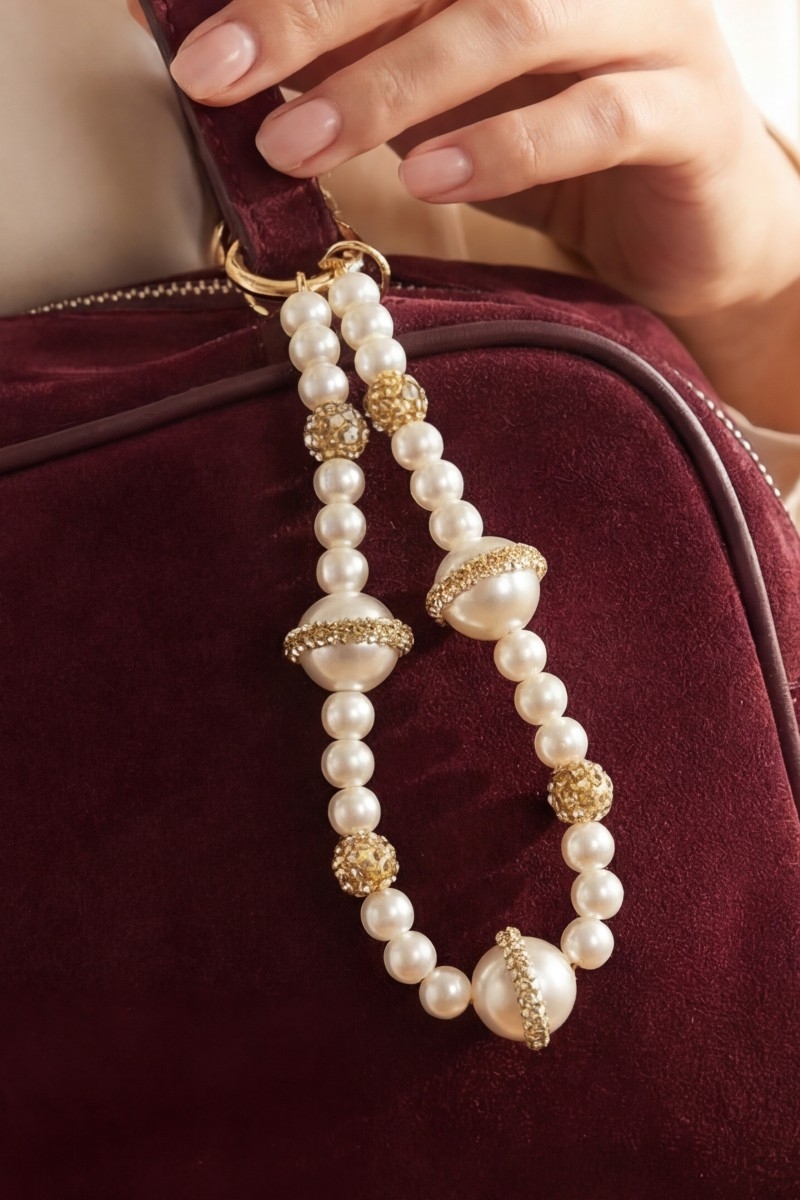 - This bag charm brings a stunning multi pearl beads style. Witness the perfect fusion of style and functionality as this bag charm effortlessly complements your lifestyle.