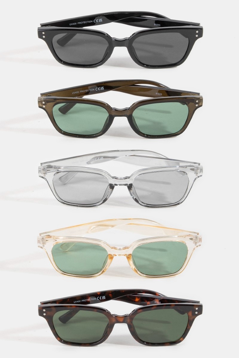 - This set of sunglasses showcases a timeless square frame assorted sunglasses set style. Revel in the intricate design that effortlessly distinguishes this set of sunglasses, making it a statement piece.
