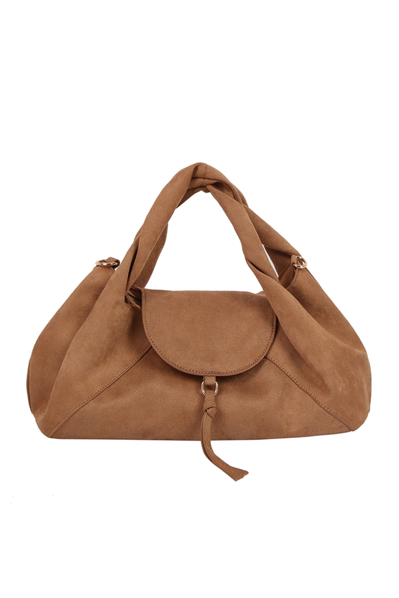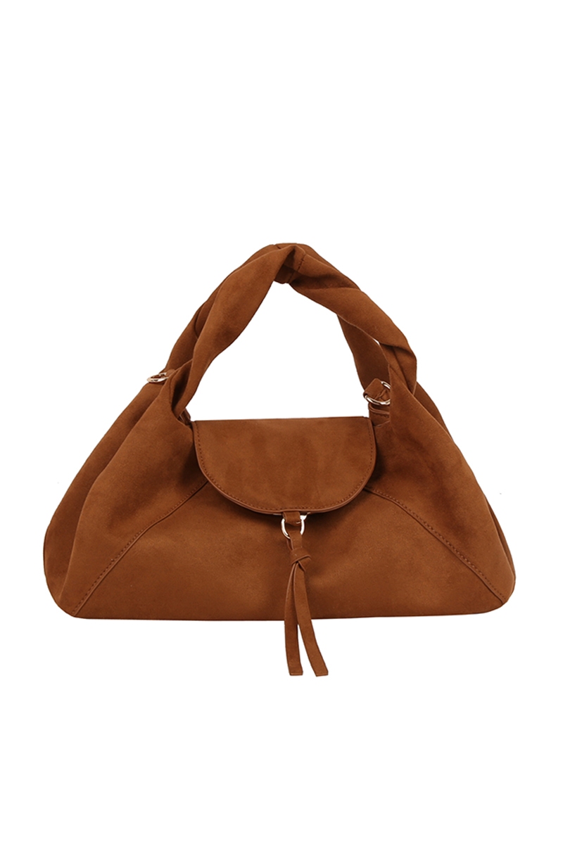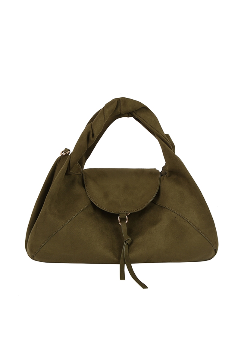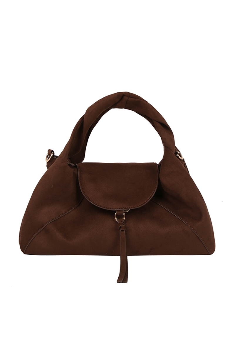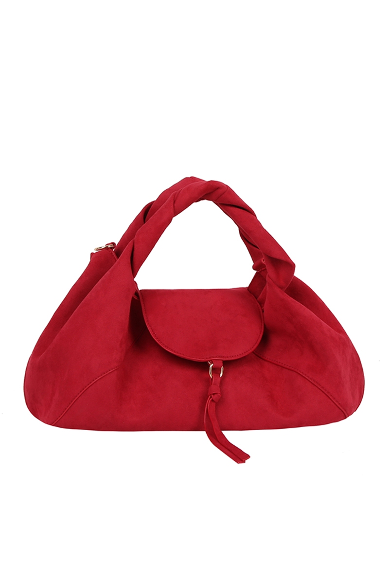 - This hand bag displays a vibrant faux suede flap satchel style. Celebrate the art of accessorizing with this piece that effortlessly encapsulates modern trends.