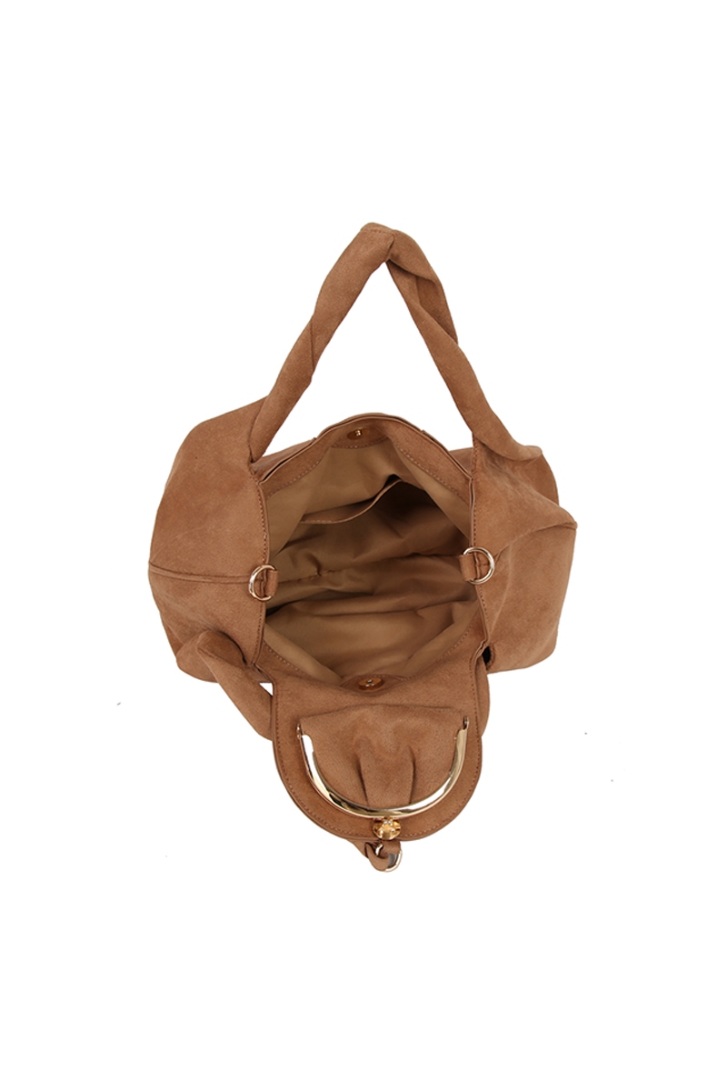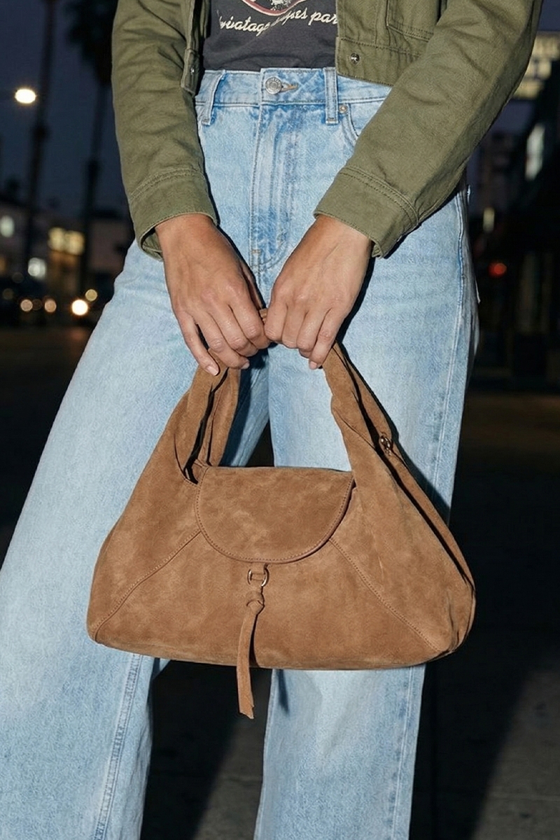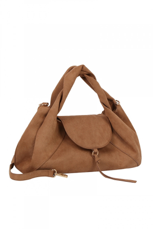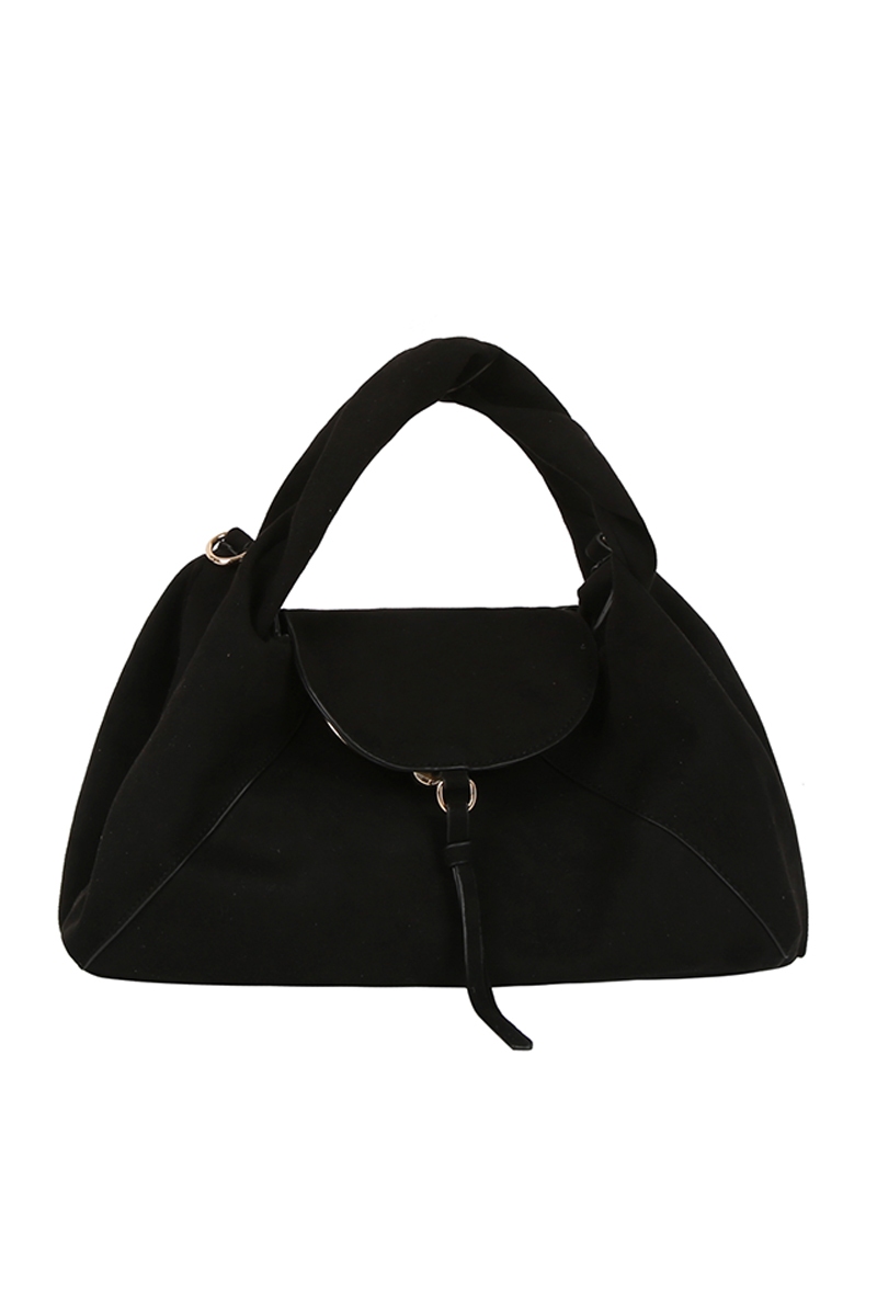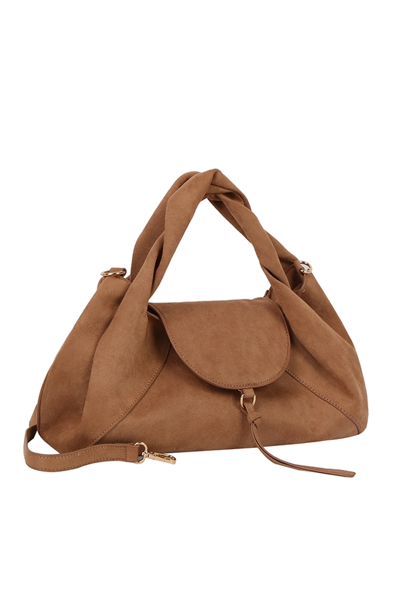 - This hand bag displays a vibrant faux suede flap satchel style. Celebrate the art of accessorizing with this piece that effortlessly encapsulates modern trends.