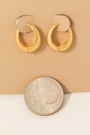- This pair of hoop earrings showcases a timeless metallic braided oval latch style. Immerse yourself in the details of design, as this pair of hoop earrings effortlessly becomes a conversation starter.