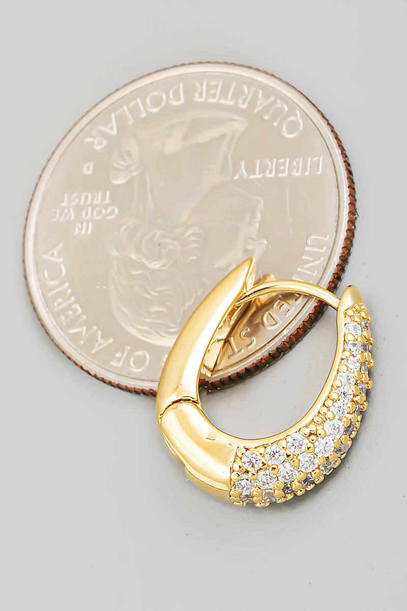 • This pair of earrings introduces a stunning pave small huggie style. Immerse yourself in the world of understated glamour as this pair of earrings effortlessly exudes timeless appeal.