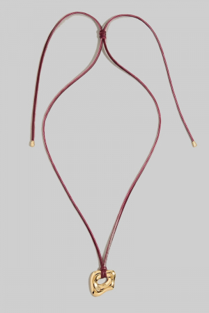 - This pendant necklace displays a fashionable abstract gold pendant adjustable cord necklace style. Celebrate the art of accessorizing with this piece that effortlessly encapsulates modern trends.