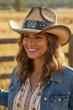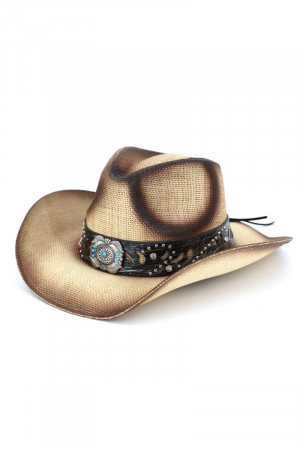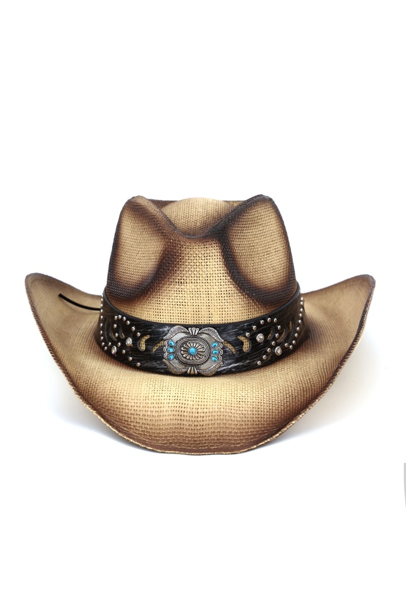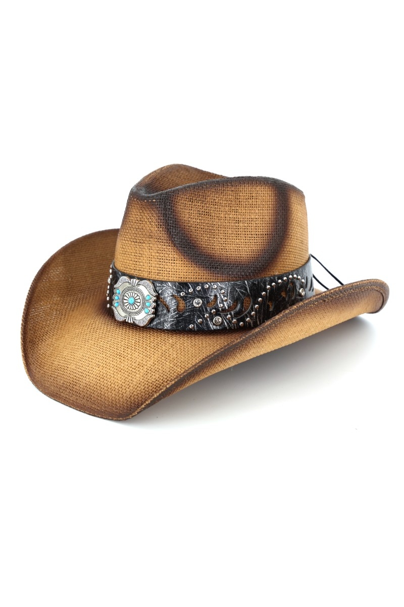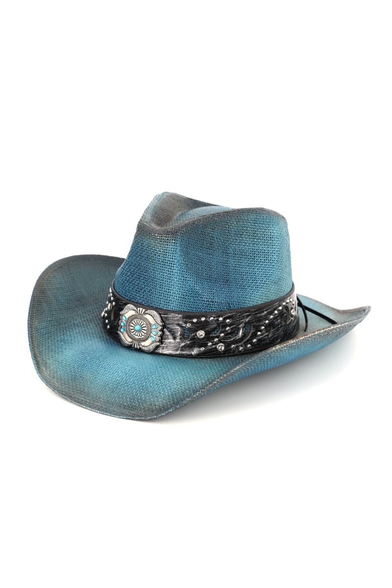 - This cowboy hat displays a vibrant silver concho turquoise band straw style. Explore a blend of classic charm and contemporary flair.
