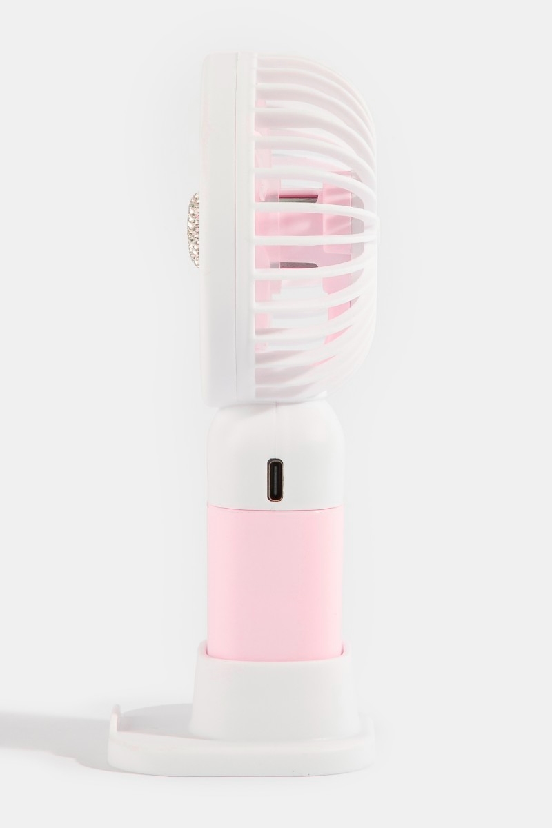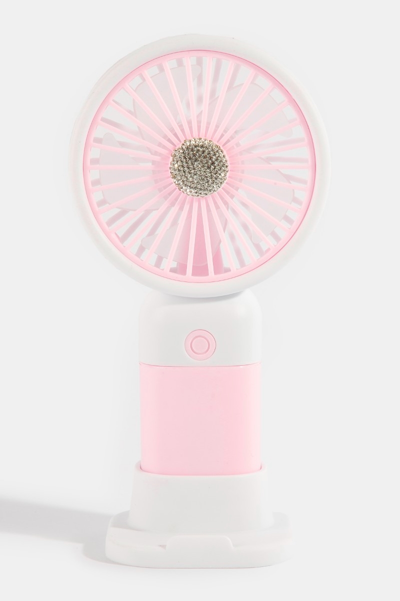 - This accessory brings a luxurious pave center portable handheld standing fan style. Immerse yourself in the world of understated glamour as this accessory effortlessly exudes timeless appeal.