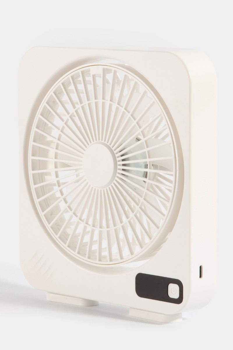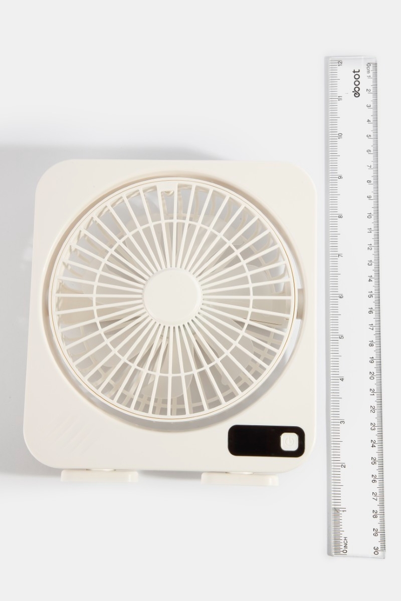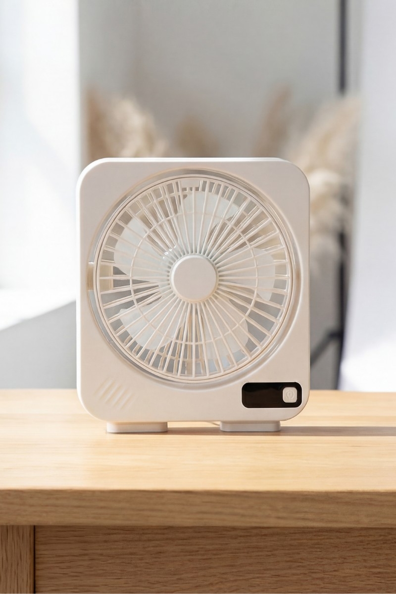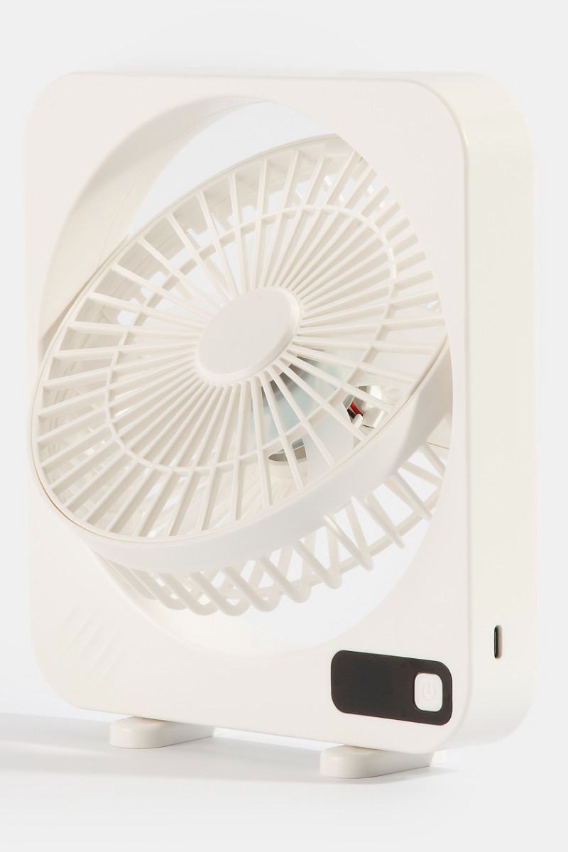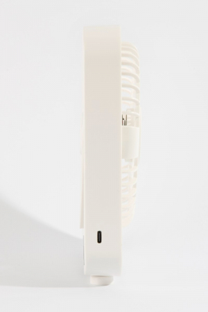 - This accessory displays a fashionable rechargeable square mini desk fan style. Elevate your ensemble with this accessory that effortlessly captures the essence of refined fashion.