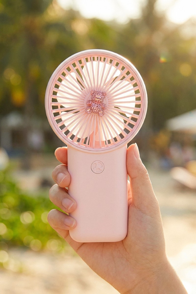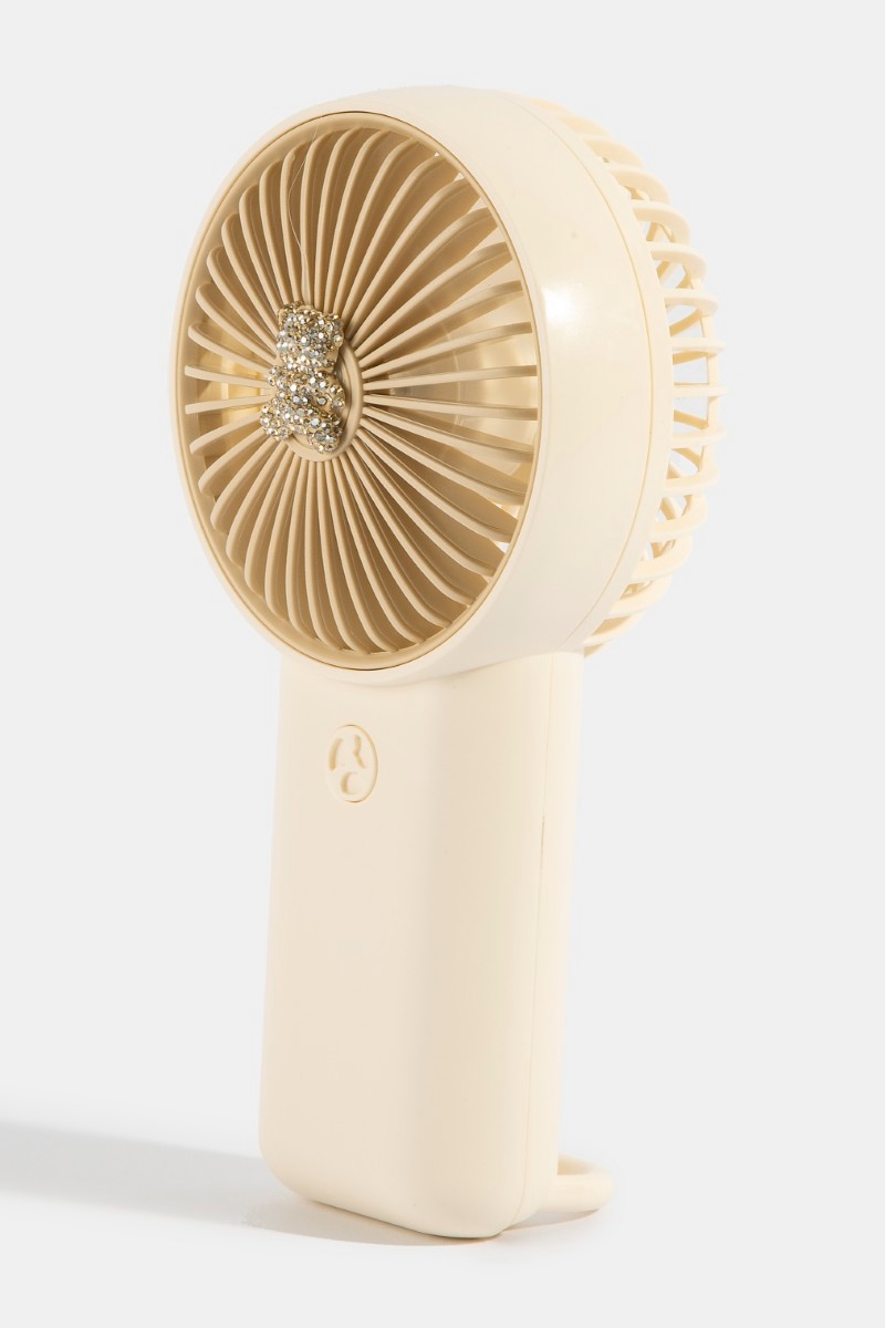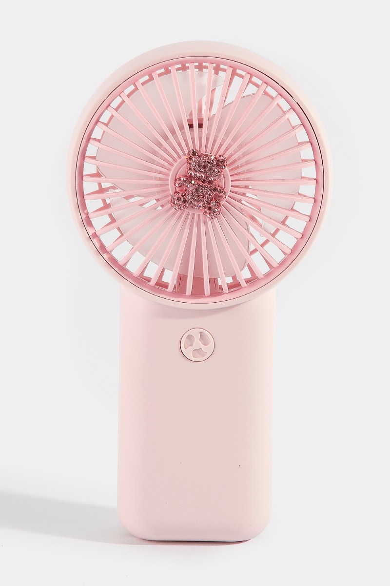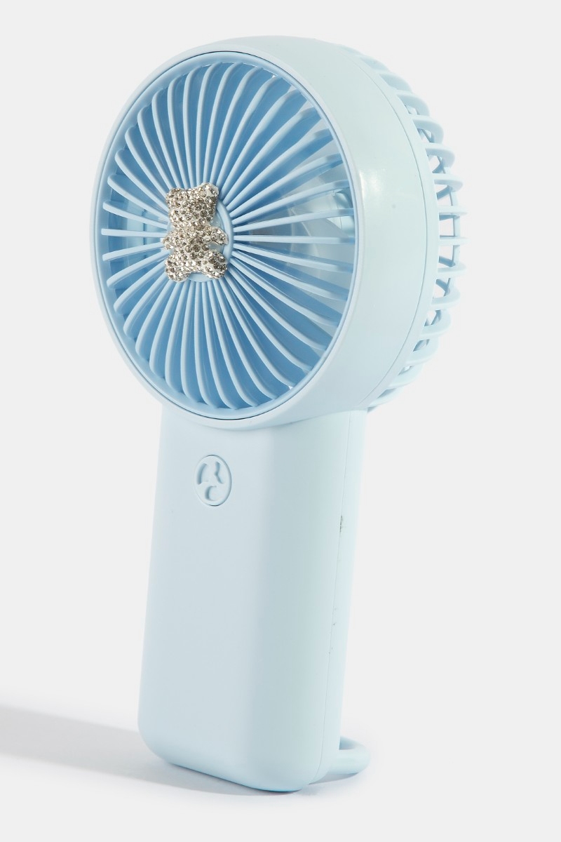 - This accessory showcases a timeless pave teddy bear handheld rechargeable fan style. Redefine your look effortlessly with this standout, on-trend piece.