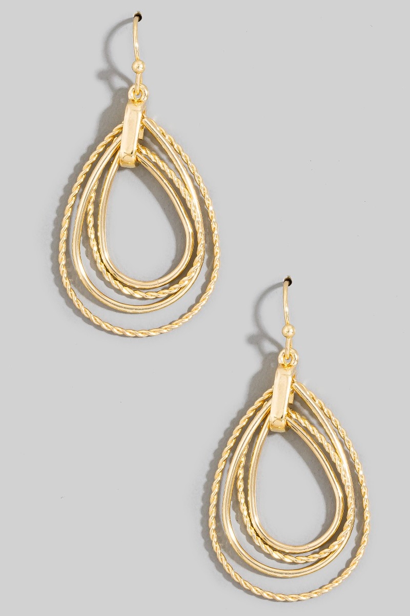 - This pair of dangle earrings showcases a timeless layered tear drops hook style. Immerse yourself in fashion finesse with this statement pair of dangle earrings.